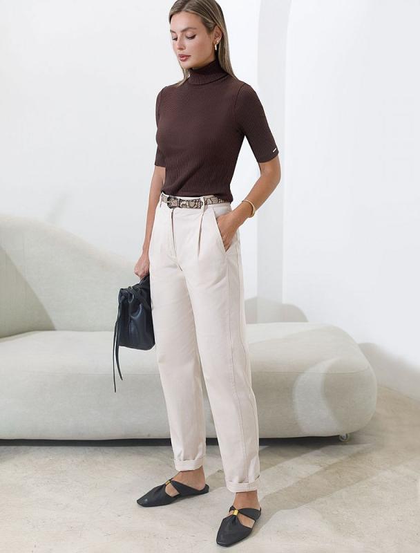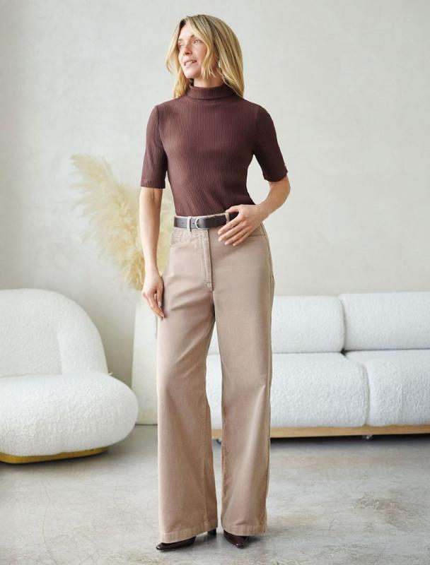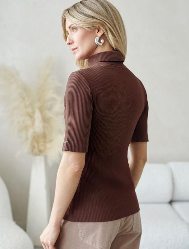 Водолазка с коротким рукавом выполнена из фактурного трикотажа в рубчик. Модель идеально сидит по фигуре не сковывая движения. Хлопковый трикотаж поддерживает оптимальную температуру тела, поэтому в изделии будет комфортно в течении всего дня. Наличие эластана в составе гарантирует формоустойчивости. Водолазка отлично впишется в деловой дресс-код и подойдет для повседневного аутфита.