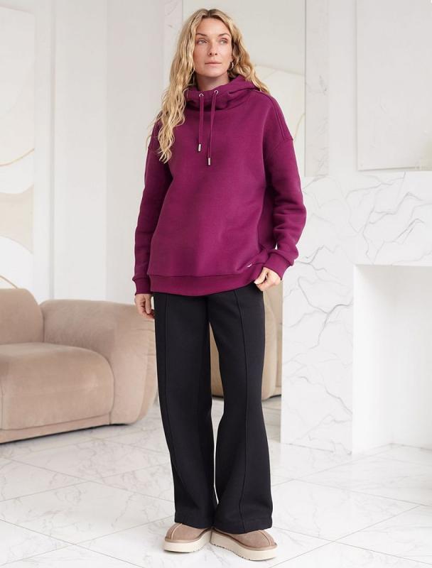 Свободное худи выполнено из футера-трехнитки с начесом. Модель over-size с классическим карманом-кенгуру, украшена металлическим логотипом бренда. Наличие эластана в составе изделия способствует меньшей сминаемости и формоустойчивости. Сочетайте в костюме с брюками D44.124 и D44.129