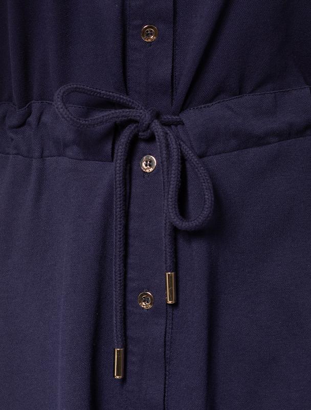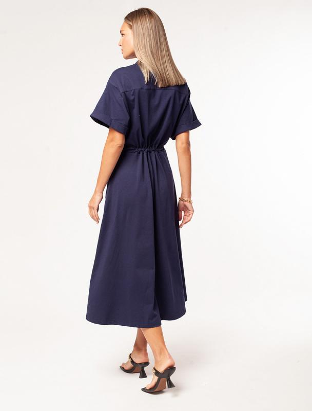 . Отложной воротник с застежкой на золотистые пуговицы. Без карманов. Пышная юбка гармонично поддерживает свободные рукава, пояс акцентирует талию, создавая силуэт песочные часы. Необычайно женственная и комфортная модель подойдет для любого типа фигуры. Добавление эластана в состав изделия способствует меньшей сминаемости и формустойчивости. Изделие украшено фирменным логотипом бренда.
