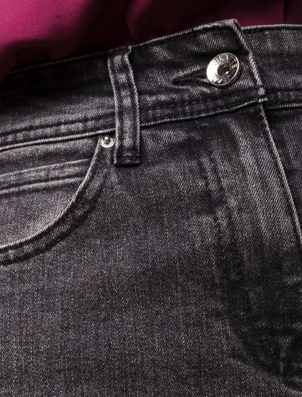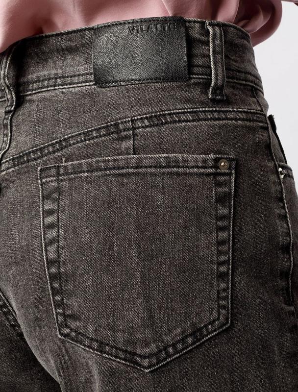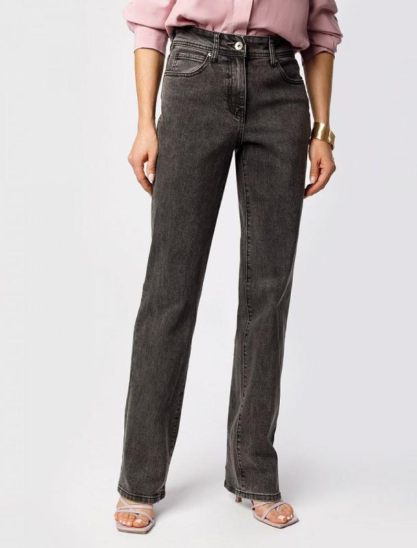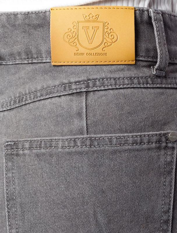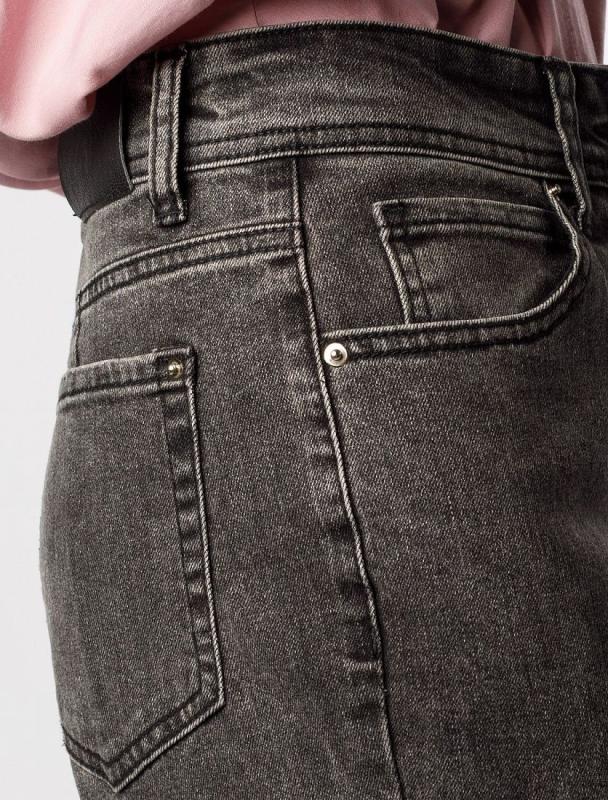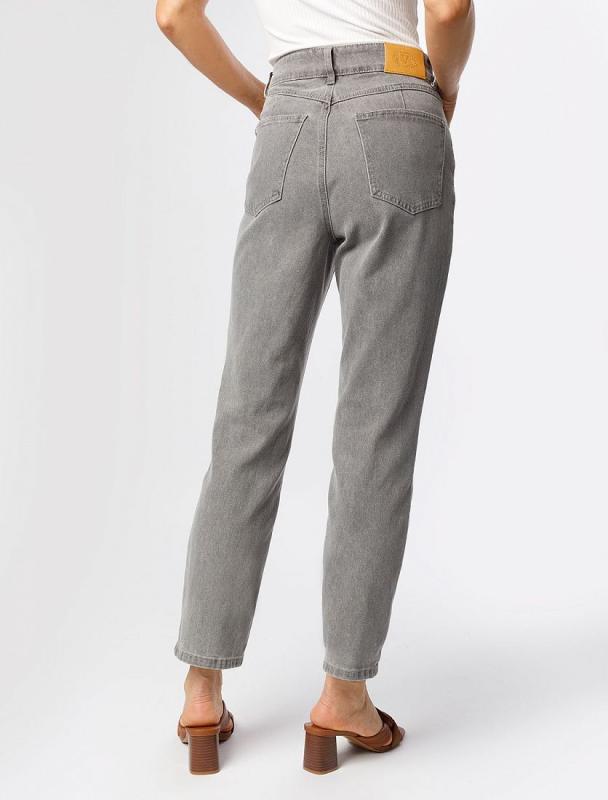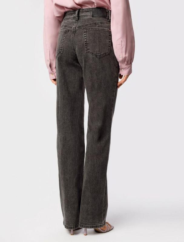 Прямые джинсы выполнены из эластичного денима. Удлиненная модель серого цвета с мягкой стиркой легко впишется в любой, даже строгий офисный образ с жакетом и блузкой. Комфортная посадка на талии подходит для любой фигуры, ткань хорошо тянется и не сковывает движений. На поясе сзади расположен нашивка из эко-кожи с логотипом бренда. Длина изделия позволяет выбрать к образу обувь на каблуке