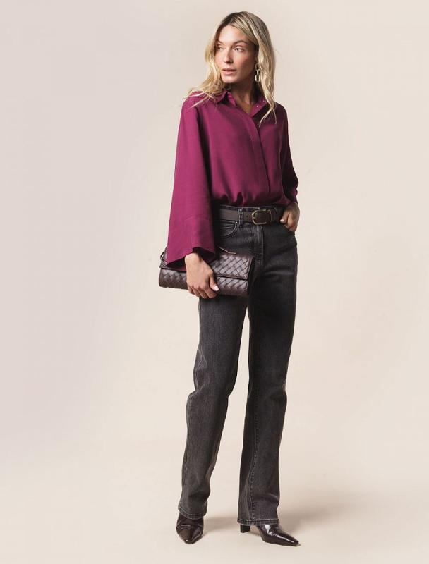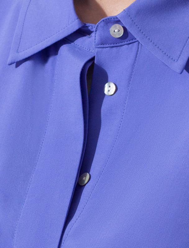 Блузка выполнена из премиальной вискозы и лиоцелла. На спинке изделия фирменный логотип бренда. Застежка на пуговицы из натурального перламутра. Приятная на ощупь ткань охлаждает кожу в жаркую погоду. Отлично впишется в нестрогий офисный дресс-код или в расслабленном повседневном образе с джинсами.