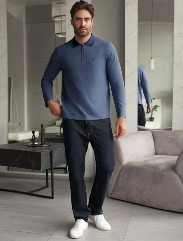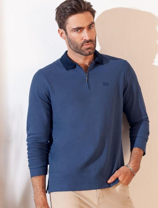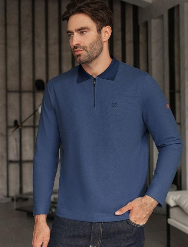 Стильный лонгслив светло-синего цвета с плетеным воротником поло с застежкой на молнию выполнен из премиального хлопка в сочетании с эластаном .Невероятно мягкая ткань из натуральных волокон - она едва ощутима на коже и словно обнимает тело. Материал при касании кажется бархатистым, при движении он словно повторяет все мельчайшие линии фигуры. По свойствам материал сочетает в себе практичность и нежность: отлично провускает воздух, сохраняя ощущение свежести в течение всего дня, при этом созраняет тепло в прохладную погоду.Идеально подходит для чувствительной кожи, не вызывает раздражения и дискомфорта. Удобный отложной воротник делает образ современным и стильным, а длинные рукава с манжетами защищают руки при ветреной погоде. Поло хорошо садится по фигуре благодаря добавлению эластичных волокон — такой вариант подходит для мужчин любого роста и размеров, не стесняет движений и создает ощущение свободы и легкости. Лонгслив с молнией дополнен ненавязчивой вышивкой на груди в виде логотипа бре