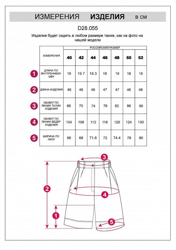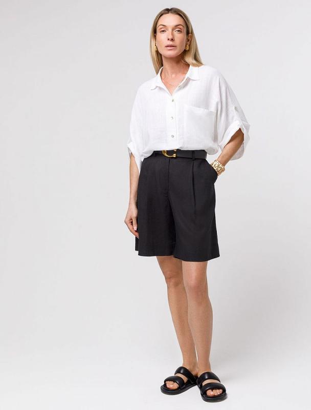 Шорты-бермуды выполнены изо льна с вискозой. Свободная модель с посадкой на талии. Ткань изящно струится, почти не мнется и сохраняет форму в течении долгого времени, обладает высокой воздухопроницаемостью. Идеальное решение в жаркий период. Подходит для любой фигуры и скрывает недостатки. Сочетается в костюме с топом D23.060 и блузками D29.237, D29.244