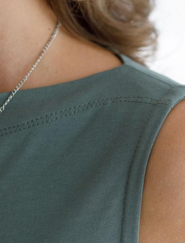 Лаконичный топ выполнен изо льна с вискозой. Изделие с горловиной формы лодочка, без застежек. Лён в составе обеспечивает прочность и воздухопроницаемость, вискоза эластичность и гладкость ткани. Благодаря такому сочетанию изделие хорошо драпируется, меньше мнется и сохраняет форму в течении долгого времени. Сочетается в костюме с брюками D24.222 и шортами D28.052