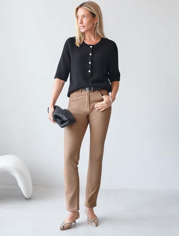 Джинсы прямого кроя выполнены из эластичного денима. Изделие комфортно садится по фигуре и не сковывает движения. Модель хорошо комбинируется с вязаным трикотажем, блузками, лонгсливами, свитшотами. Как альтернатива брюкам, в нестрогий офисный дресс-код. Изделие дополнено высококачественной фурнитурой с фирменным логотипом бренда.