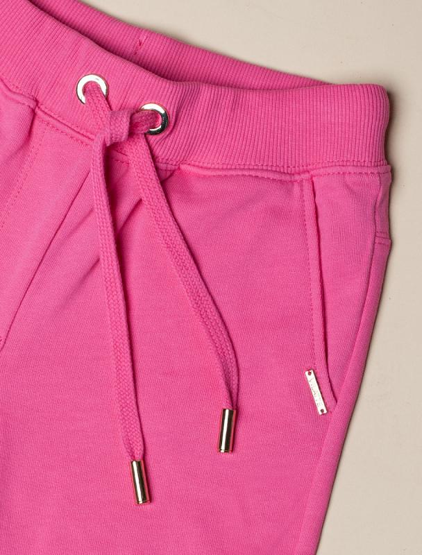 Яркие джоггеры оттенка фуксия сшили из мягкого хлопкового трикотажа. Премиальный футер из 100% хлопка позволяет воздуху циркулировать и не раздражает кожу, а свободный крой модели не сковывает движения. За удобную посадку на талии отвечает широкий эластичный пояс с регулируемым шнурком. Модель дополнена высококачественной фурнитурой золотистого цвета. Идеально в костюме с худи F49.405