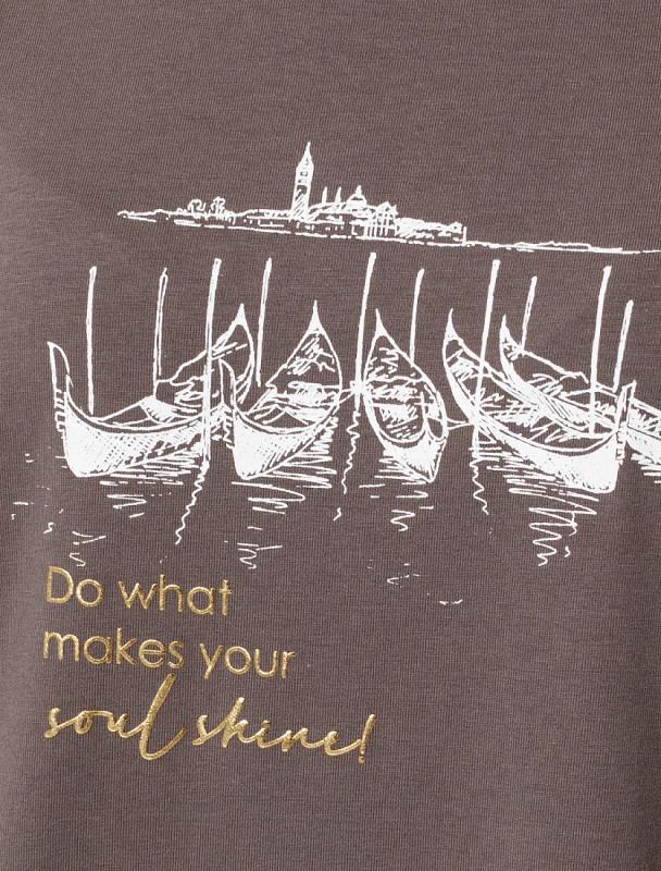 Перевод принта: Do what makes your soul shine - делай то, что заставляет тебя сиять. Футболка выполнена из эластичного хлопка. Авторский принт нанесен фактурной краской с устойчивым покрытием. Модель дополнена боковыми разрезами и фирменным логотипом бренда по низу изделия. Спинка немного длиннее. Свободный крой подходит для любой фигуры и не сковывает движений.