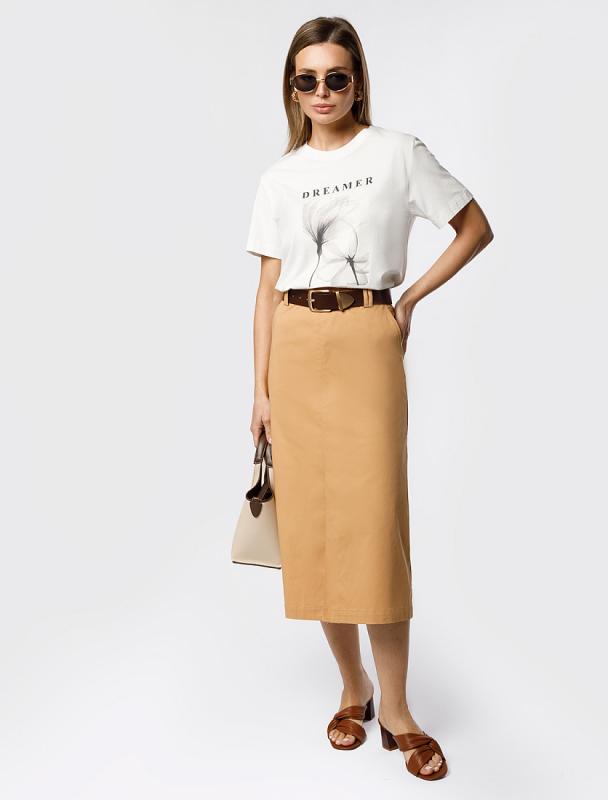 Юбка силуэта полусолнце выполнена из эластичного футера двухнитки. Модель дополнена высоким разрезом спереди и поясом на резинке. Эластан в составе изделия гарантирует комфорт и формоустойчивость. Сочетайте в комплекте с свитшотом D49.072 и паркой D49.076