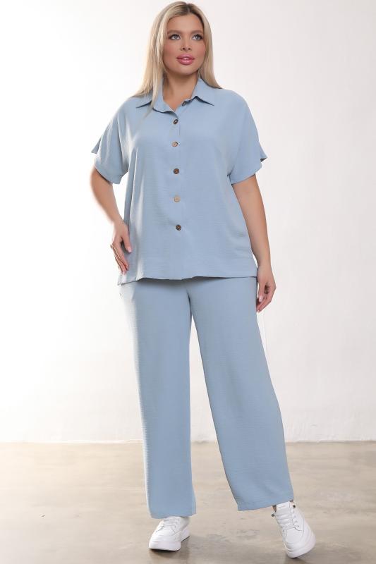 Стильный костюм, состоящий из рубашки и укороченных брюк из ткани с рельефной поверхностью.