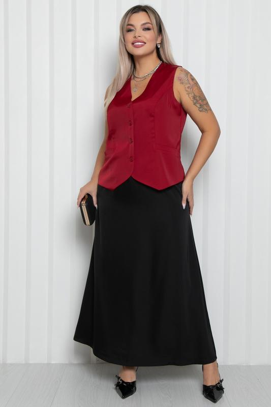 Жилет из плотного шелка винного цвета.