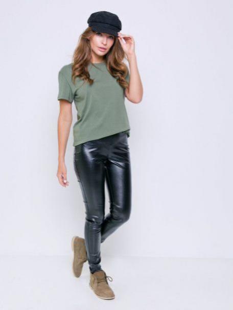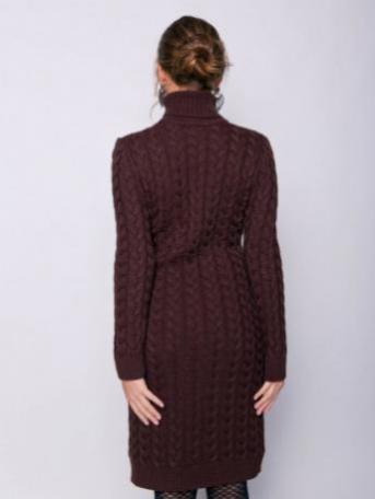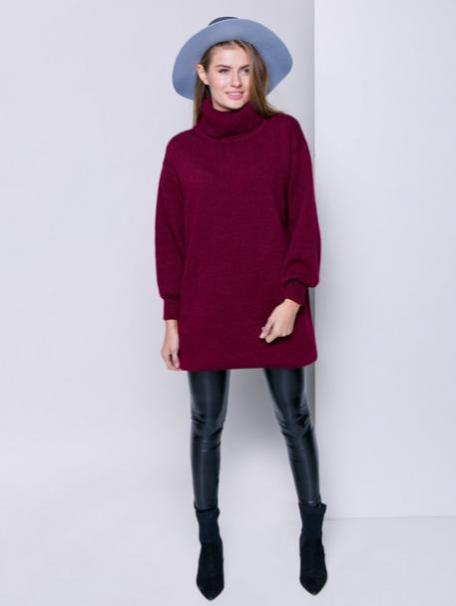 42/Платье с длинным рукавом с отделкой из эко-кожи, оригинальный крой горловины, застежка молния расположена по среднему шву спины.