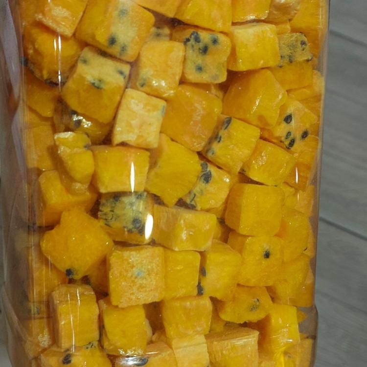 Состав: Маракуйя сублимированная кубики 1 кгМаракуйя является источником витамина А, В, С, Н и К, железа, каротина, белков и других полезных веществ. Она богата клетчаткой. Пищевые волокна необходимы для здоровья, ведь клетчатка способствует перевариванию еды, улучшая перистальтику кишечника, что ускоряет вывод шлаков из организма. Она может помочь нормализации уровня сахара в крови, предотвратить его скачки. Исследования показали, что продукты с высоким содержанием клетчатки могут уменьшать риск развития диабета, ожирения, болезней сердца и сосудов. Кубики маракуйи можно использовать в своих авторских чаях, добавлять в лимонады или есть просто в качестве перекуса. Вариантов применения очень много, можно добавлять в каши, мюсли, йогурты, украшать торты и десерты.