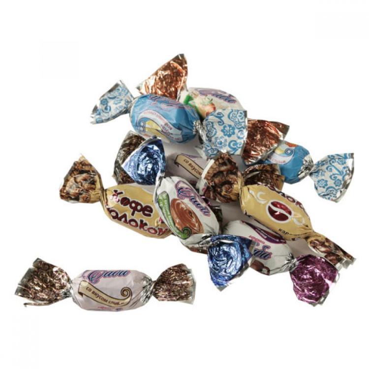 Состав: сахар, патока, молоко сгущенное цельное, масло кокосовое, кофе натуральный, ароматизатор.В 100г продукта содержится: белков-5,1г, жиров-11,8г, углеводов –89г. Энергетическая ценность 100г продукта – 295 ккал-1233 кДж.