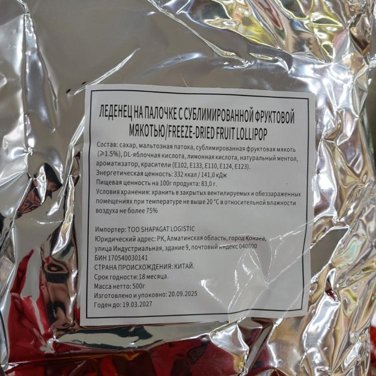 Леденец на палочке с сублимированной фруктовой мякотью, 500 г Китай