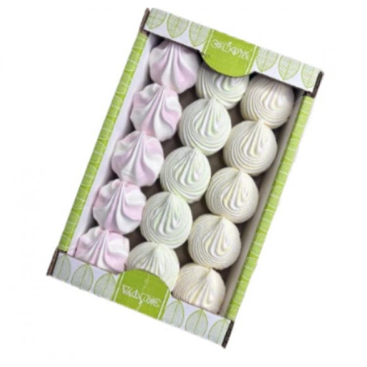 Изготавливается по традиционной рецептуре взбиванием в пену нежнейшего фруктового пюре с натуральным яичным белком и полезным растительным веществом из яблок - пектином. Сочетание натуральных и полезных ингредиентов придаёт любимому лакомству необыкновенную нежность и легкость!Состав: сахар, патока, пюре яблочное, белок яичный сухой, пектин, кислота лимонная, краситель пищевой, ароматизатор.