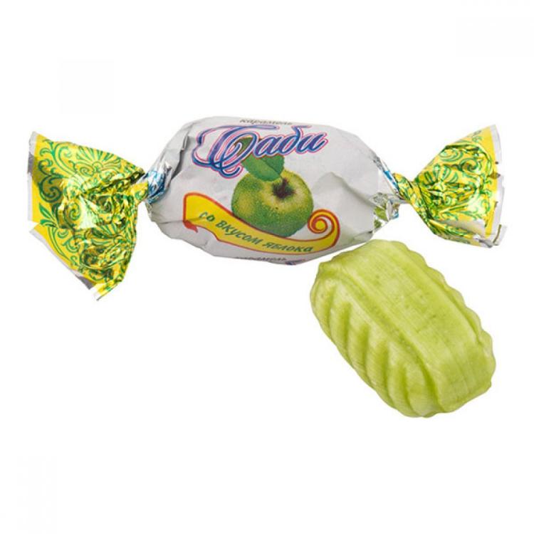 Состав: сахар, патока, глазурь, пюре яблочное, агар-агар , белок яичный сухой, кислота лимонная , ароматизатор.В 100г продукта содержится: белков-1,6г, жиров- 5,6 г, углеводов- 79 г. Энергетическая ценность 100 г. продукта – 345 ккал-1442кДж.