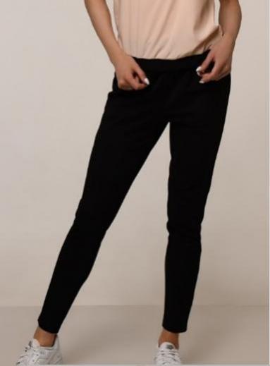 Трендовые брюки спорт-шик из плотного трикотажного материала. Модель удобной классической посадки, с боковыми карманами. По талии широкий притачной пояс, сзади пояс на резинке