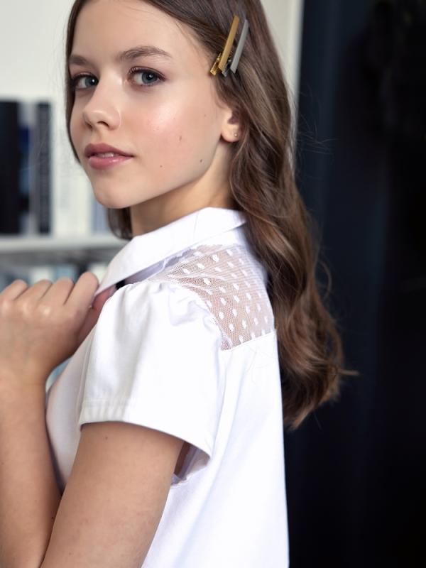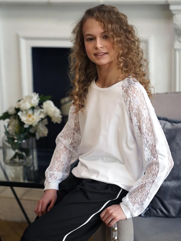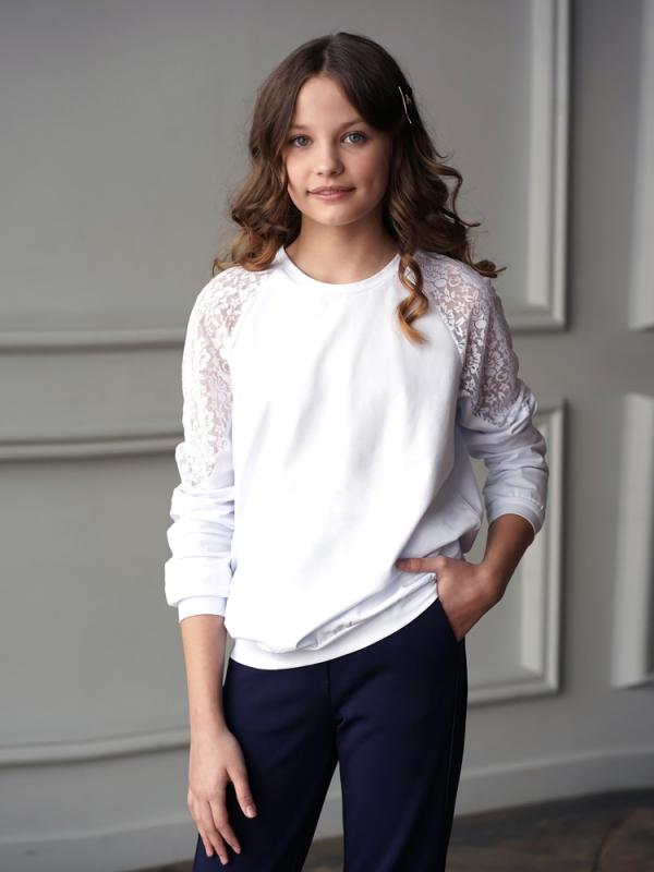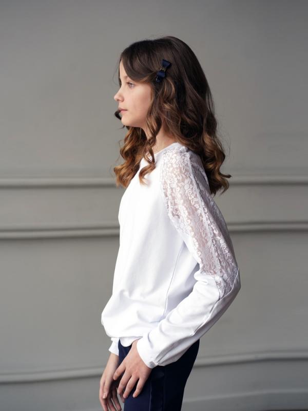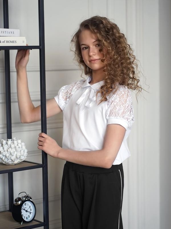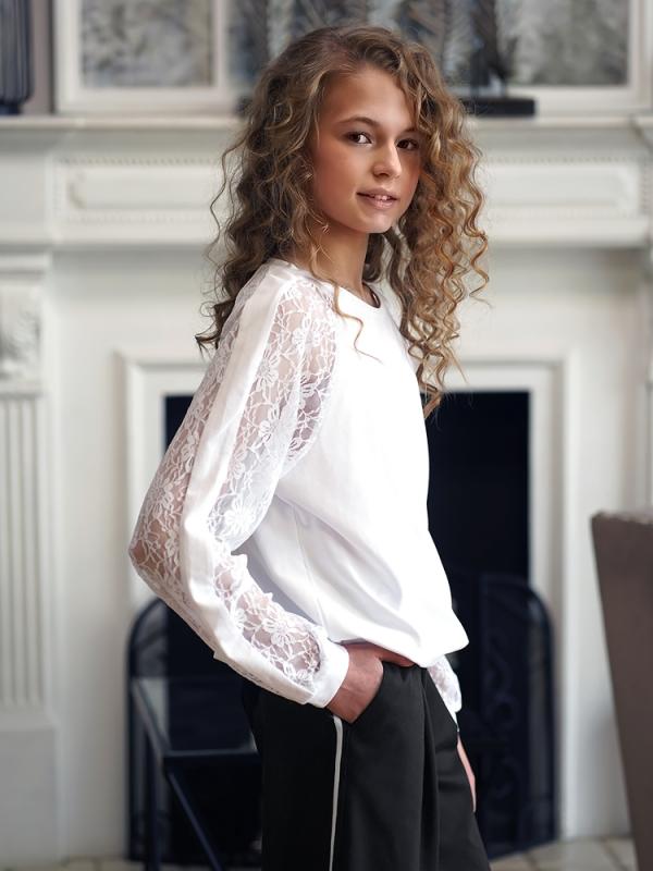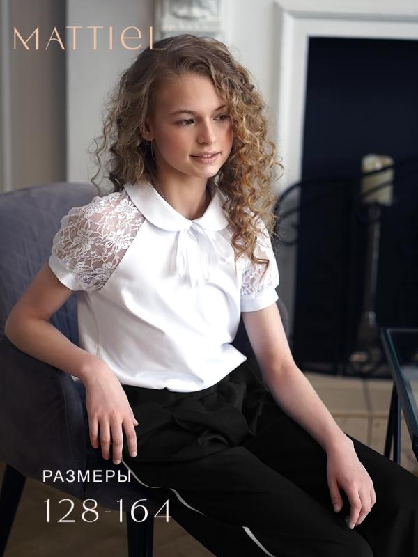 Школьная блузка для девочек выполнена в свободном стиле, подчеркивающем комфорт и удобство. Модель отличается удобным поясом-резинкой, обеспечивающим оптимальный силуэт и свободу движений. Рукава выполнены в стиле реглан, создавая стильный и современный образ. Акцент на область плеча выполнен изящным кружевом, придающий изделию особую нежность и женственность. Открытая горловина добавляет легкости и свежести образу, делая блузку универсальным выбором для повседневного и школьного гардероба.Производитель: MattieL'