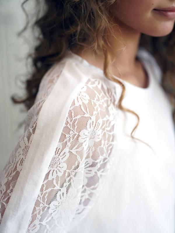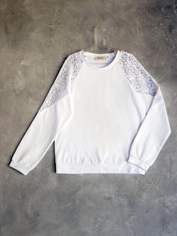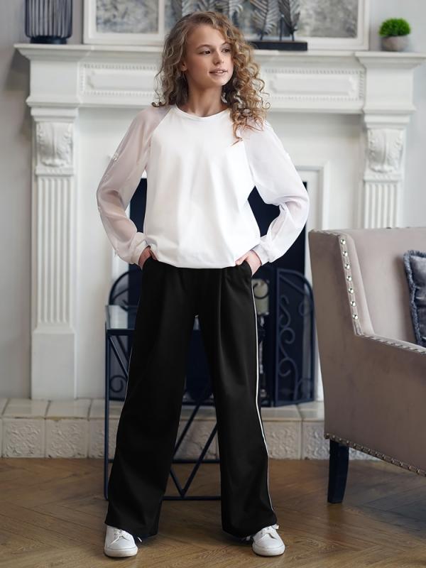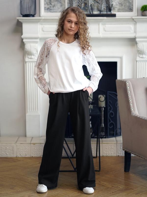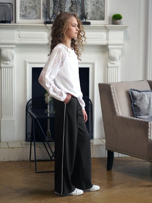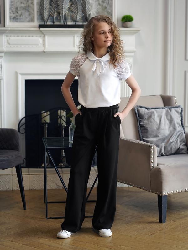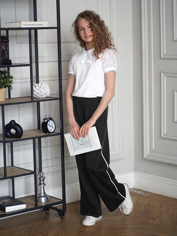 Школьная блузка для девочек выполнена в свободном стиле, подчеркивающем комфорт и удобство. Модель отличается удобным поясом-резинкой, обеспечивающим оптимальный силуэт и свободу движений. Рукава выполнены в стиле реглан, создавая стильный и современный образ. Акцент на область плеча выполнен изящным кружевом, придающий изделию особую нежность и женственность. Открытая горловина добавляет легкости и свежести образу, делая блузку универсальным выбором для повседневного и школьного гардероба.Производитель: MattieL'