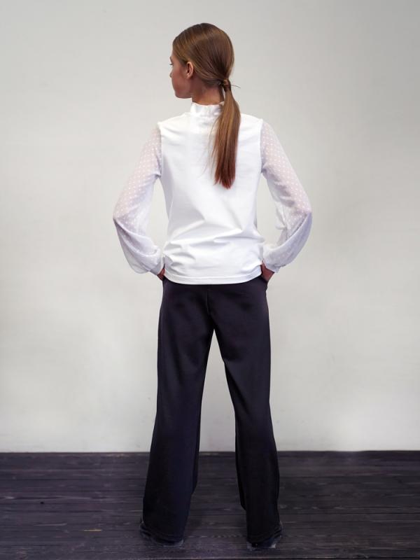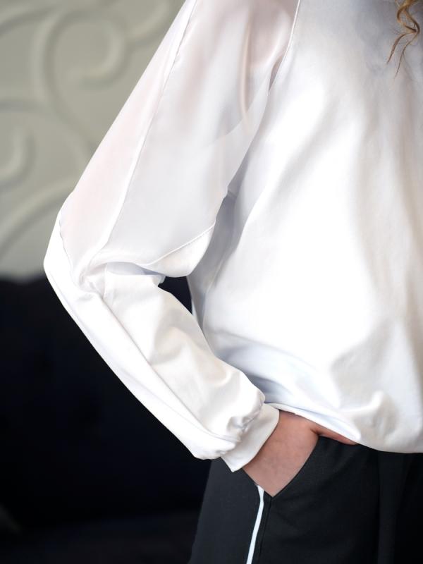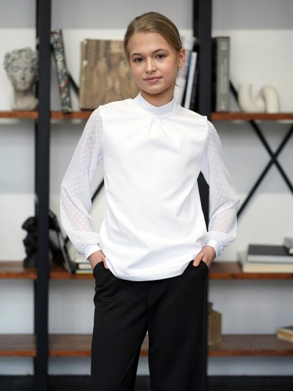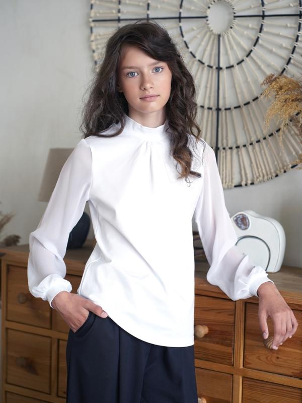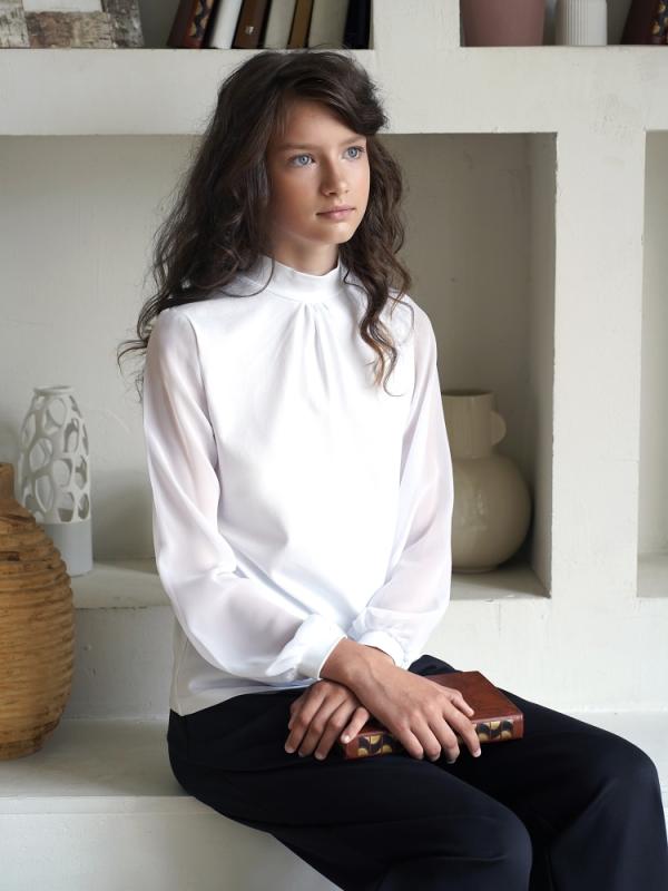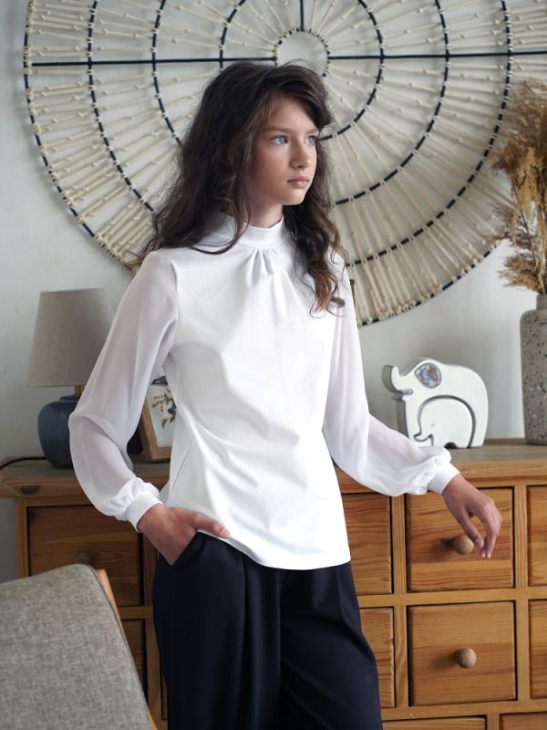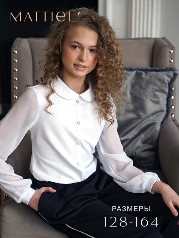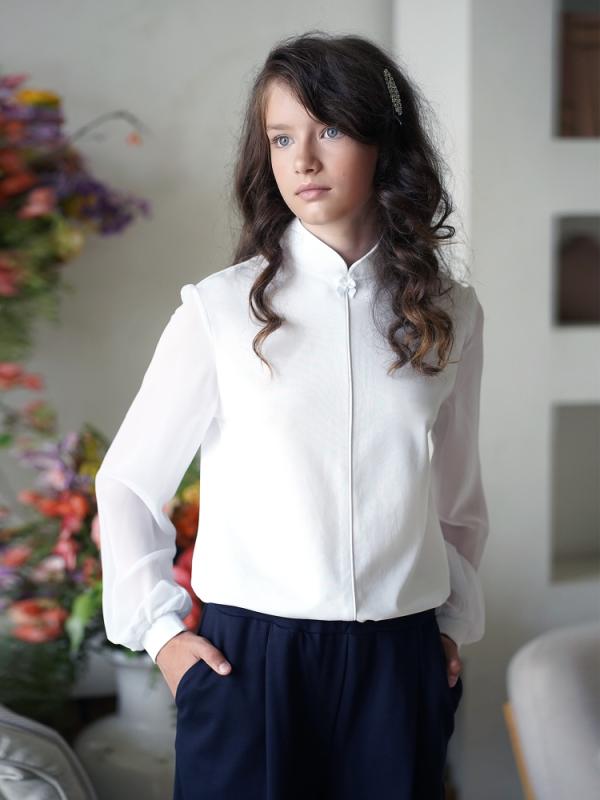 Предлагайте своим дочерям удобную и элегантную школьную блузку для девочек, выполненную из качественного натурального трикотажа и утонченного шифона. Эта блузка отличается изысканным дизайном и превосходным качеством исполнения, подчеркивая индивидуальность ребенка. Основные характеристики: - Ткань: из комфортного высококачественного трикотажного полотна - Силуэт: прямой, аккуратно облегающий фигуру. - Горловина: классическая высокая стойка, придающая изделию строгий и благородный вид. - Рукава: длинные из шифона, обработанные мягкими манжетами, защищающими ткань от повреждений и сохраняющие эстетический вид надолго.Производитель: MattieL'