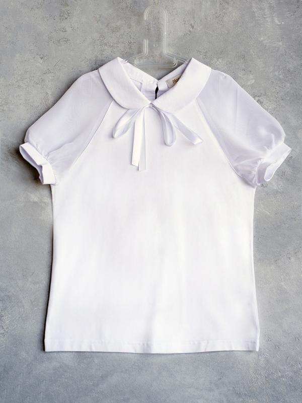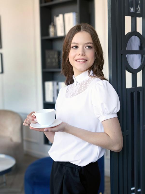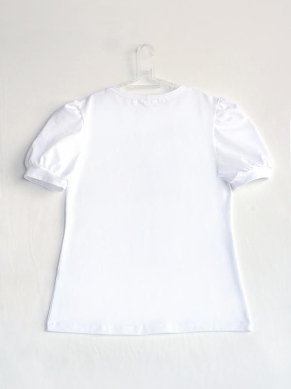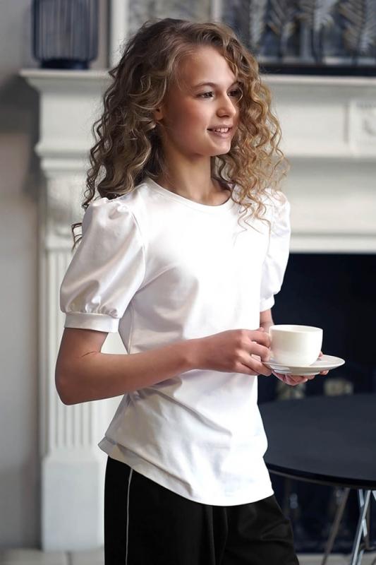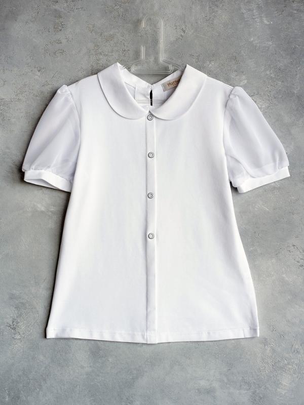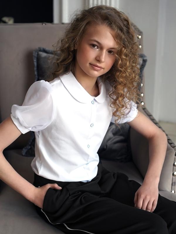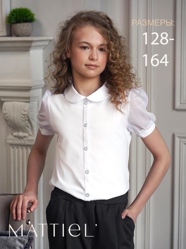 Эта уникальная блузка станет идеальным дополнением гардероба вашей дочери. Она изготовлена из мягкого и эластичного трикотажа кулирки, обеспечивающего максимальный комфорт и свободу движений. Короткий рукав-фонарик придает образу игривость и свежесть, а прямой силуэт подчеркивает стройность фигуры. Отсутствие воротника делает блузку удобной для повседневного ношения, позволяя сочетать ее с различными аксессуарами и элементами одежды. Преимущества: - Идеально подходит для школьной формы и повседневной носки. - Создает свежий и современный образ. - Обеспечивает комфорт и свободу движений. - Легко комбинируется с юбками, шортами и брюками.Производитель: MattieL'