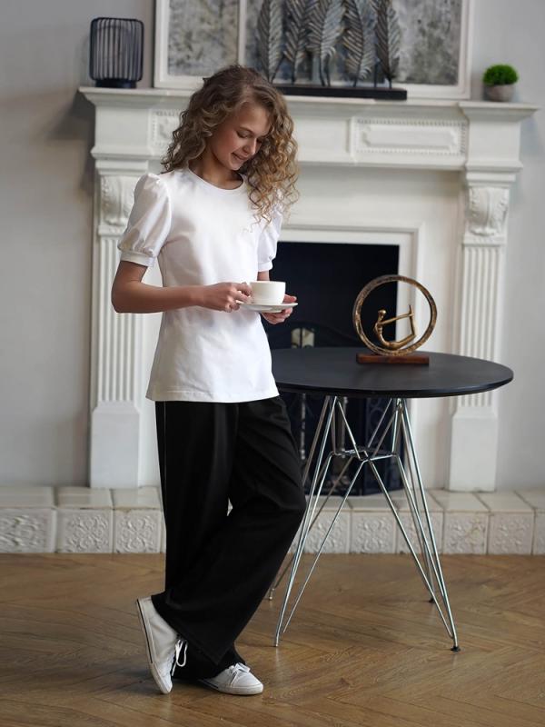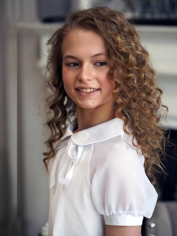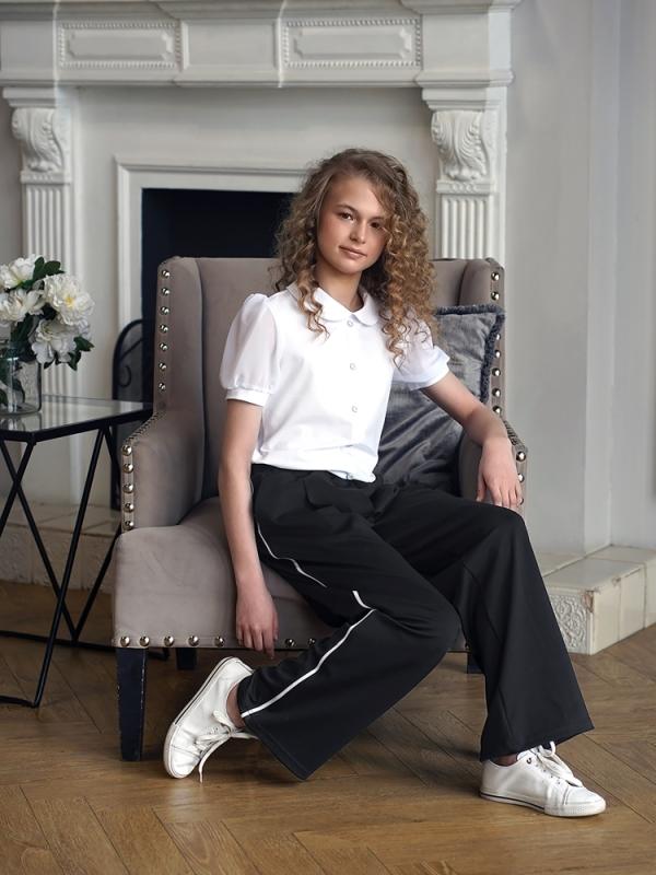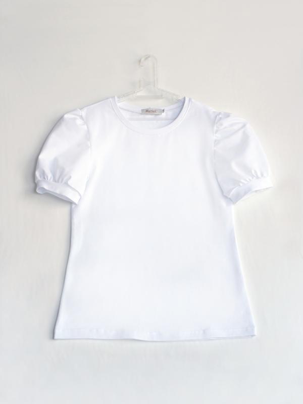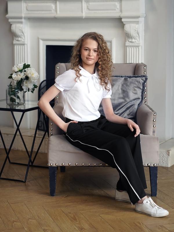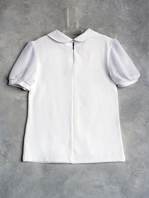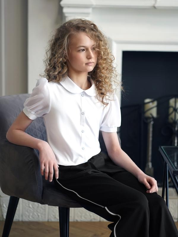 Эта уникальная блузка станет идеальным дополнением гардероба вашей дочери. Она изготовлена из мягкого и эластичного трикотажа кулирки, обеспечивающего максимальный комфорт и свободу движений. Короткий рукав-фонарик придает образу игривость и свежесть, а прямой силуэт подчеркивает стройность фигуры. Отсутствие воротника делает блузку удобной для повседневного ношения, позволяя сочетать ее с различными аксессуарами и элементами одежды. Преимущества: - Идеально подходит для школьной формы и повседневной носки. - Создает свежий и современный образ. - Обеспечивает комфорт и свободу движений. - Легко комбинируется с юбками, шортами и брюками.Производитель: MattieL'