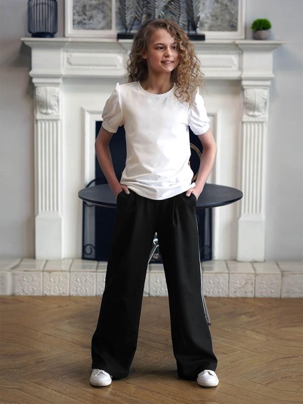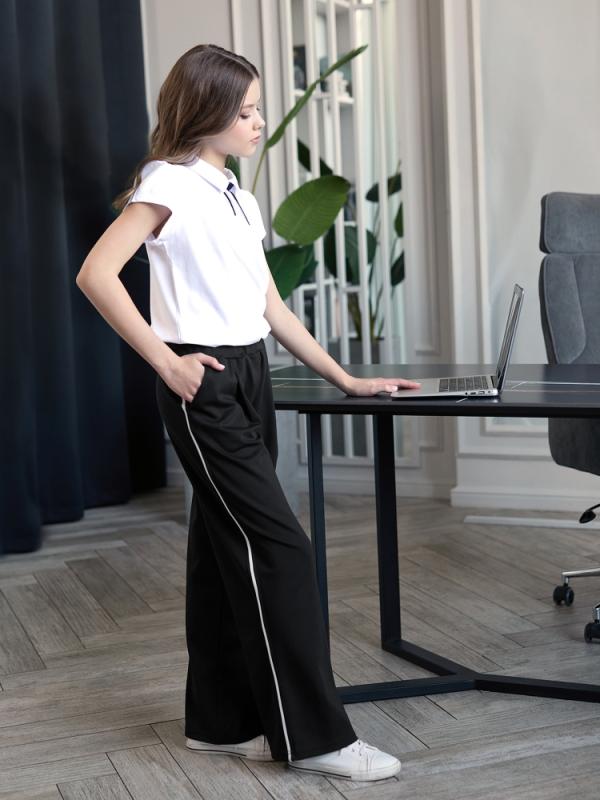 Школьные брюки идеально подойдут девочке любого возраста благодаря своей универсальности и удобству. Изготовленные из качественного трикотажного материала нейлон-рома, они обеспечивают комфорт даже при длительном ношении. Прямой фасон позволяет носить их каждый день, сохраняя аккуратный внешний вид. Брюки оснащены эластичной резинкой на талии, что обеспечивает дополнительную свободу движений и удобство. Два боковых кармана делают их функциональными и практичными. Глубокий черный оттенок подходит практически ко всему гардеробу и легко сочетается с любыми рубашками, футболками и свитерами.Производитель: MattieL'