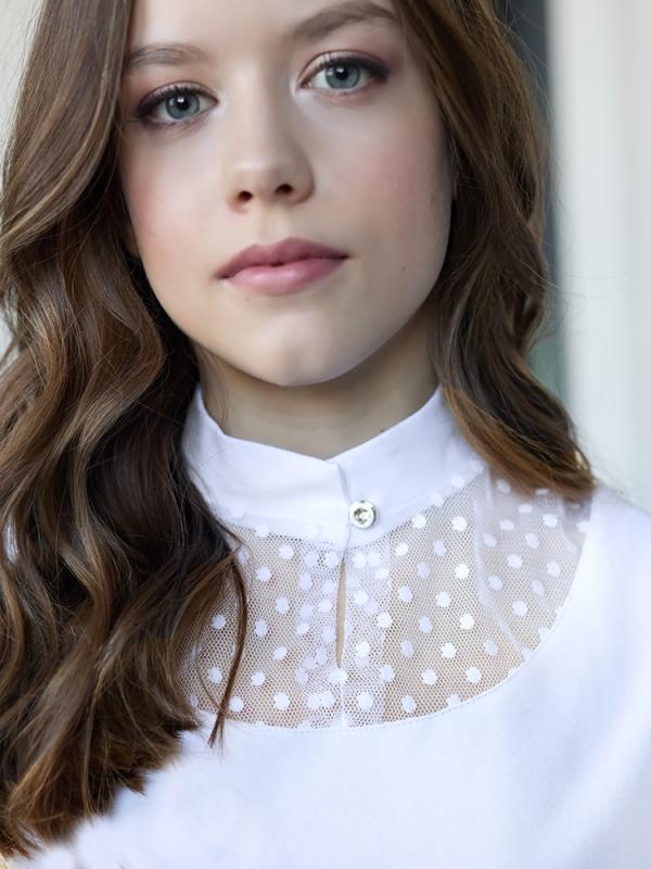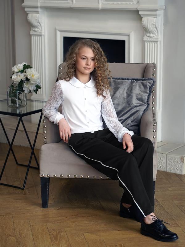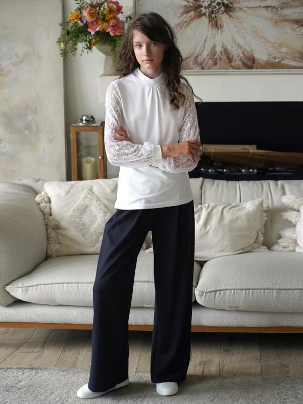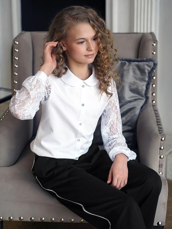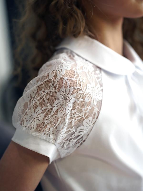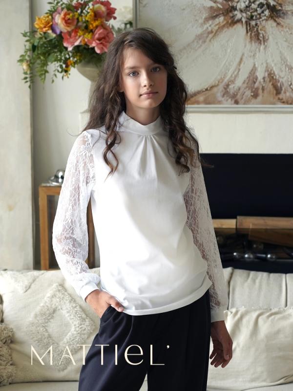 Предлагайте своим дочерям удобную и элегантную школьную блузку для девочек, выполненную из качественного натурального трикотажа и эластичного, мягкого кружева. Эта блузка отличается изысканным дизайном и превосходным качеством исполнения, подчеркивая индивидуальность ребенка. Основные характеристики: - Ткань: из комфортного высококачественного трикотажного полотна - Силуэт: прямой, аккуратно облегающий фигуру. - Горловина: классическая высокая стойка, придающая изделию строгий и благородный вид. - Рукава: длинные из мягкого эластичного кружева, обработанные манжетами, защищающими ткань от повреждений и сохраняющие эстетический вид надолго.Производитель: MattieL'