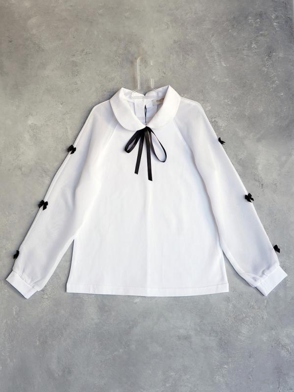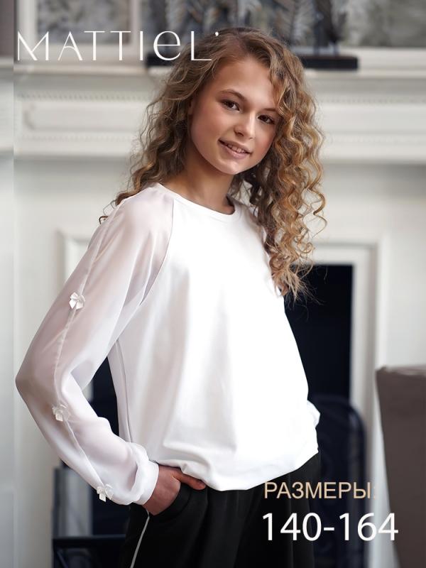 Наряду с традиционными формами школьной одежды предлагаем вам уникальную и изящную блузку для девочки. Выполненная из роскошного высококачественного трикотажа пенье, эта блузка создает идеальный баланс элегантности и комфорта. Её тонкий шелковистый матовый блеск приятно дополняет общее впечатление, делая девочку особенной и неповторимой. Характеристики изделия: - Материалы: Верх выполнен из деликатного натурального трикотажа пенье, дополнен деталями из струящегося шифона на рукавах. - Фасон: Прямого свободного кроя, идеально подходящего для динамичного детского роста. - Декоративные элементы: Привлекают внимание яркие контрастные бантики на длинных рукавах реглана и элегантный бантик на груди, придающий особый шарм. - Оформление горловины: Круглый отложной воротничок, закрепленный сзади на пуговицу.Размер: 128, 134, 140, 146, 152, 158, 164