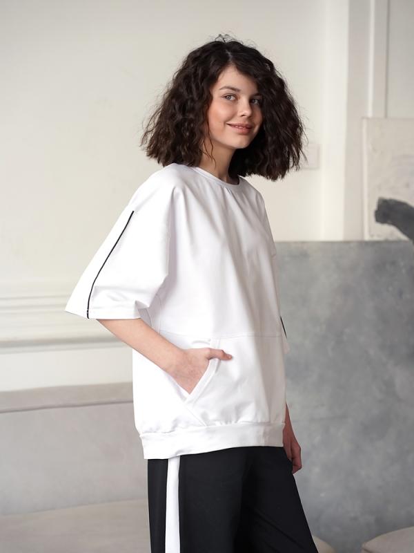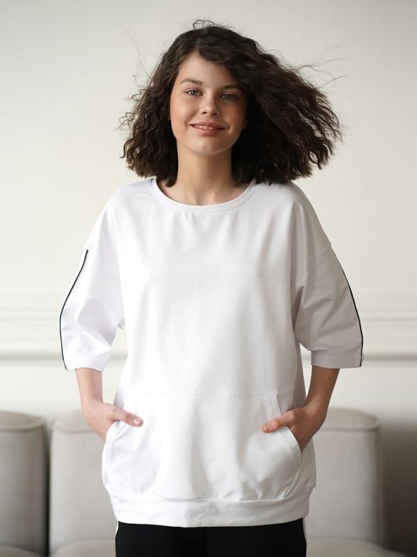 Эта уникальная блузка станет идеальным дополнением гардероба вашей дочери. Она изготовлена из мягкого и эластичного трикотажа кулирки, обеспечивающего максимальный комфорт и свободу движений. Короткий рукав-фонарик придает образу игривость и свежесть, а прямой силуэт подчеркивает стройность фигуры. Отсутствие воротника делает блузку удобной для повседневного ношения, позволяя сочетать ее с различными аксессуарами и элементами одежды. Особенности изделия: - Материал: мягкий и приятный на ощупь эластичный трикотаж кулирка. - Рукава: короткие, в форме фонарика. - Силуэт: прямой, универсальный. - Воротник: отсутствует, создавая ощущение легкости и комфорта. - Стиль: спортивный, молодежный.Производитель: MattieL'