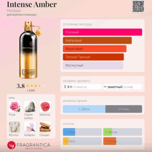 Montale Intense Amber — красивый и стильный цветочный унисекс-парфюм с ванильно-амбровыми полутонами, выпущенный в 2024 году французским нишевым парфюмерным брендом Montale.