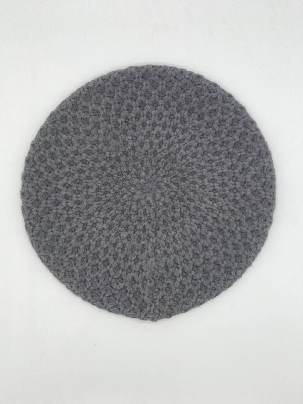 Берет однослойный крупной вязки с металлическим декором