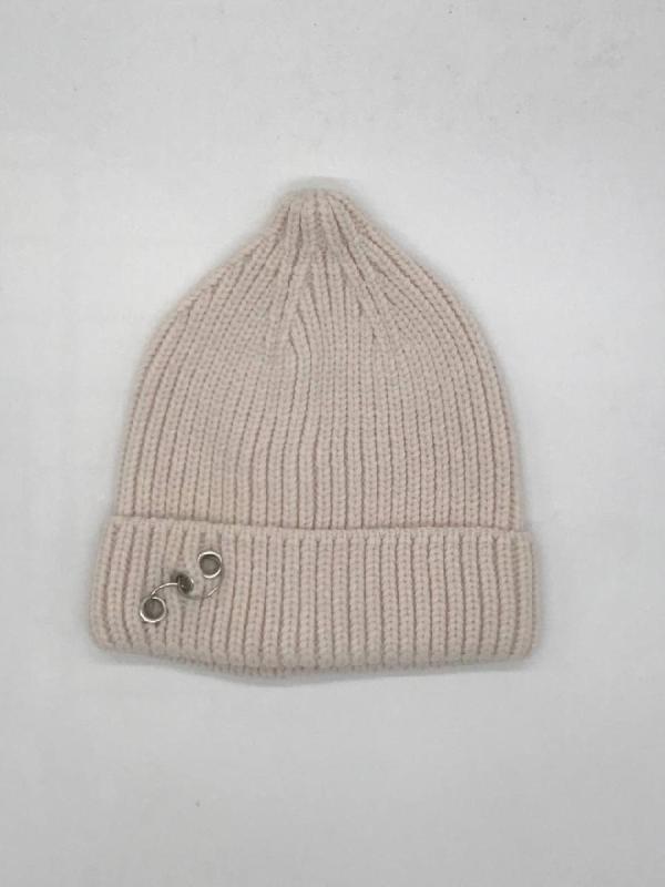 Шапка двойная, фактурной вязки, с металлическом декором ,расшивкой сзади и разрезом