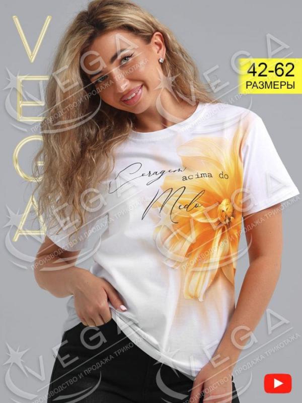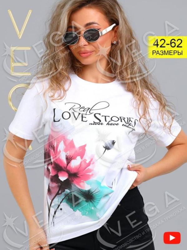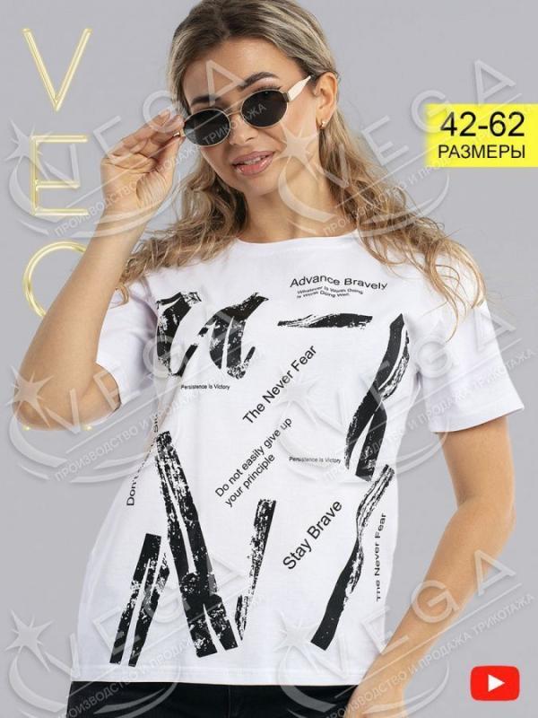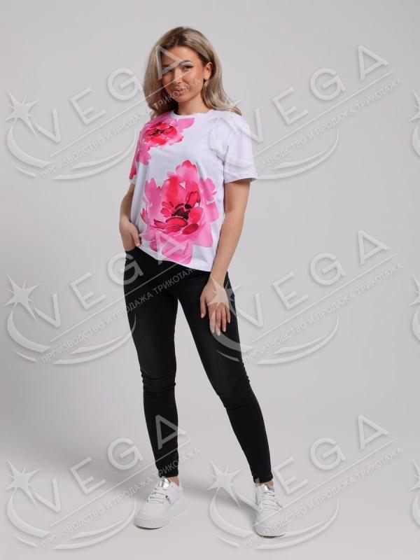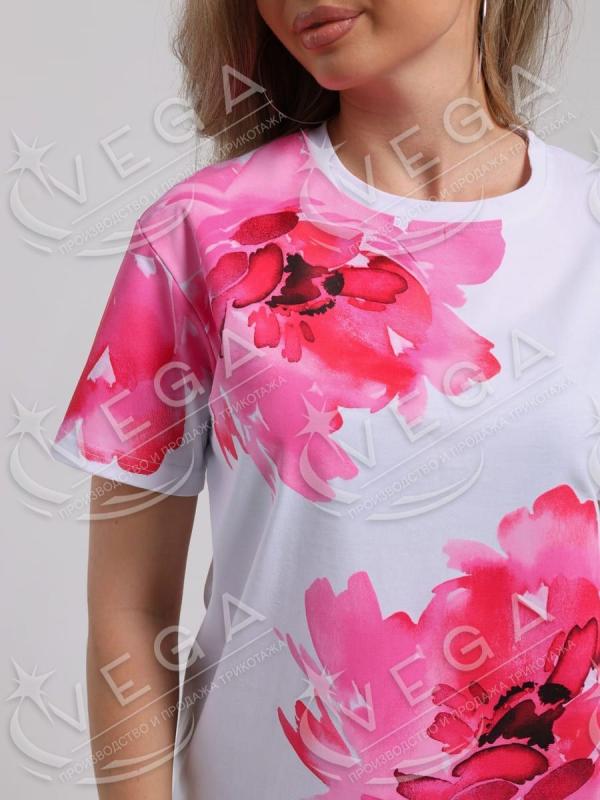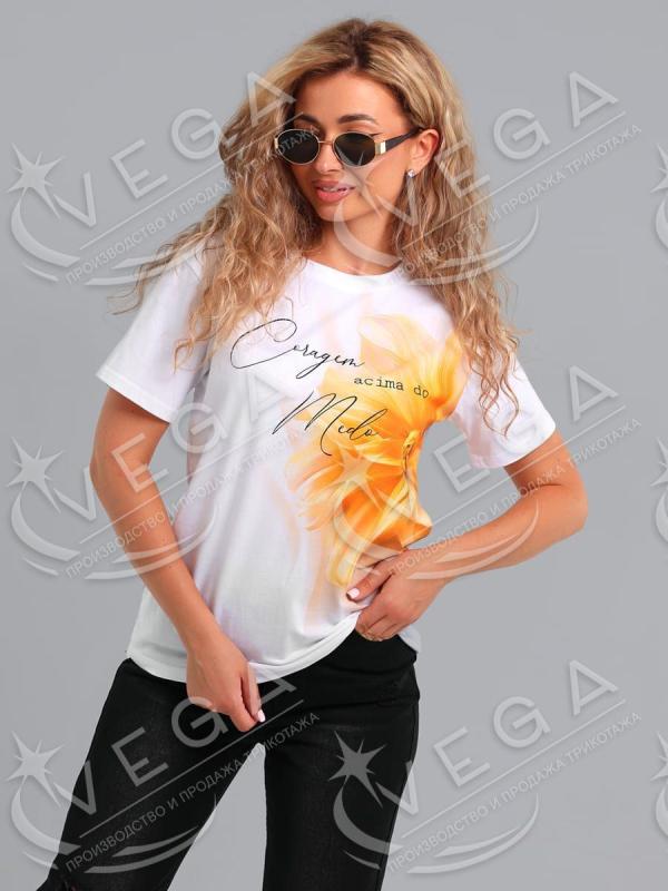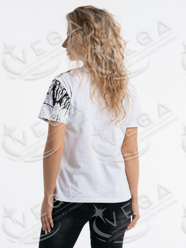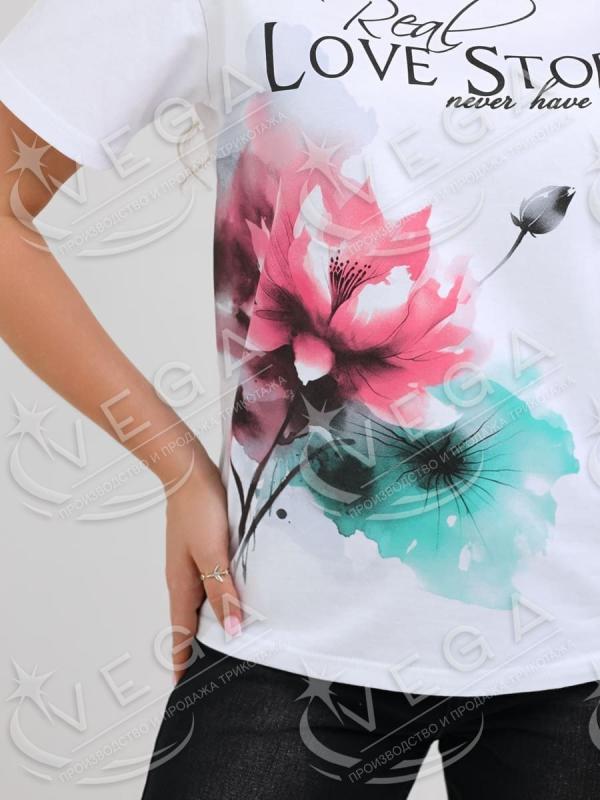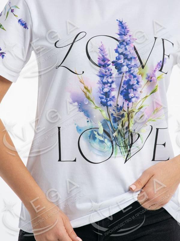 Футболка классического фасона, сшита из ткани кулирка с лайкрой, с округлым вырезом с усилением горловины. Она мягкая, приятная к телу и на ощупь, не нарушает воздухообмен, поэтому в ней тепло, когда на улице прохладно и комфортно в жарком помещении. Небольшое количество лайкры в составе ткани продлит изделию жизнь и не даст потерять вид нового товара, так как обладает уникальной способностью к растяжению и восстановлению формы. Такая модель станет прекрасным дополнением вашего гардероба. Она отлично подойдет для любого образа. Большой выбор из ассортимента моделей с разными принтами поможет вам выбрать любимую. Надев футболку с пиджаком, Вы создадите образ деловой и стильной девушки. Если Вы решите надеть ее с джинсами и кроссовками и отправиться на прогулку, то получится образ утончённый и романтический. Каждая из них по своему хороша. Стильный принт делает модель индивидуальной и заметной. Уважаемые покупатели! Обращаем Ваше внимание, что цветовая гамма изделий может отл