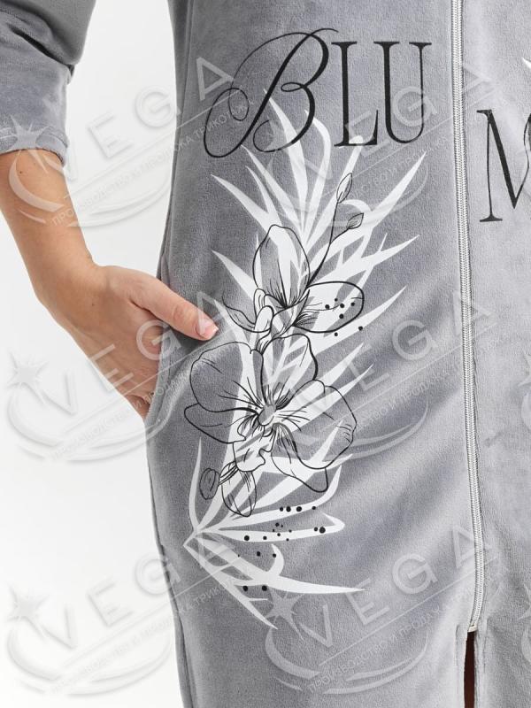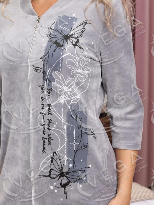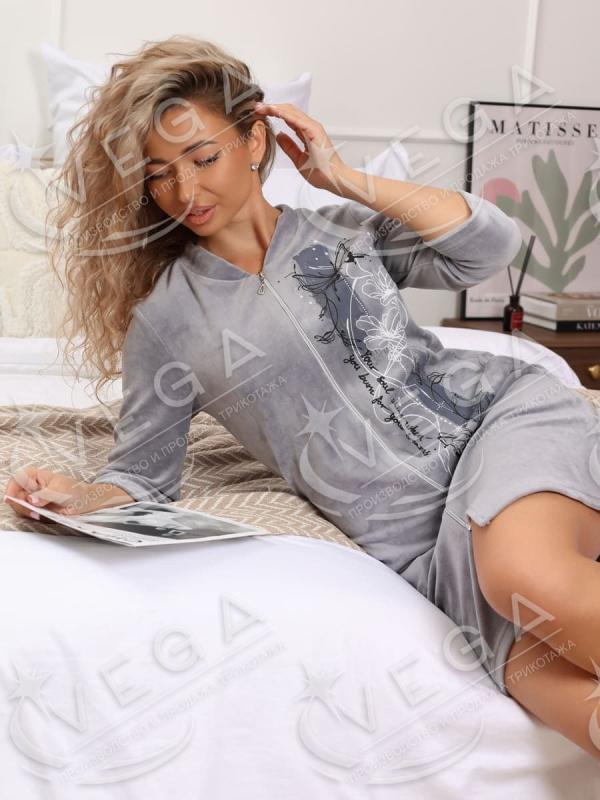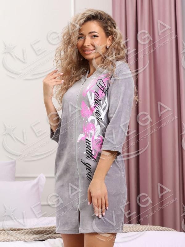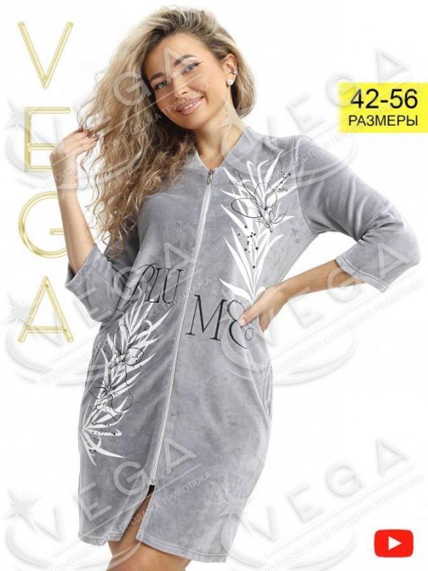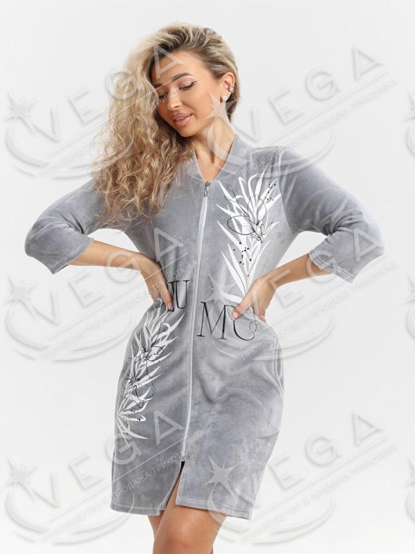 Халат женский домашний велюровый на молнии - теплый, удобный, практичный и уютный вариант одежды для дома. Велюр, из которого пошит халат с принтом и рукавом 3-4, высокого качества, стойкий к изнашиванию, не линяет при стирке, но может отличаться по оттенку цвета. Этот женственный и нежный халат подарит ощущение роскоши и уюта своей обладательнице. В этом халате приятно не только окунуться в мир спокойствия и домашнего уюта, он идеально подойдет для встречи гостей. Теплый халат на молнии будущие мамы оценят эту модель по достоинству. Стильный, мягкий и легкий халат с округлым воротником и боковыми карманами большие размеры подойдет любому типу фигуры, женщинам с пышными формами, для высоких, для среднего роста, для невысоких. Отличный вариант для подарка родным и близким, девушке. Сделано в России. Уважаемые покупатели! Обращаем Ваше внимание, что цветовая гамма изделий может отличаться от цвета на фото.