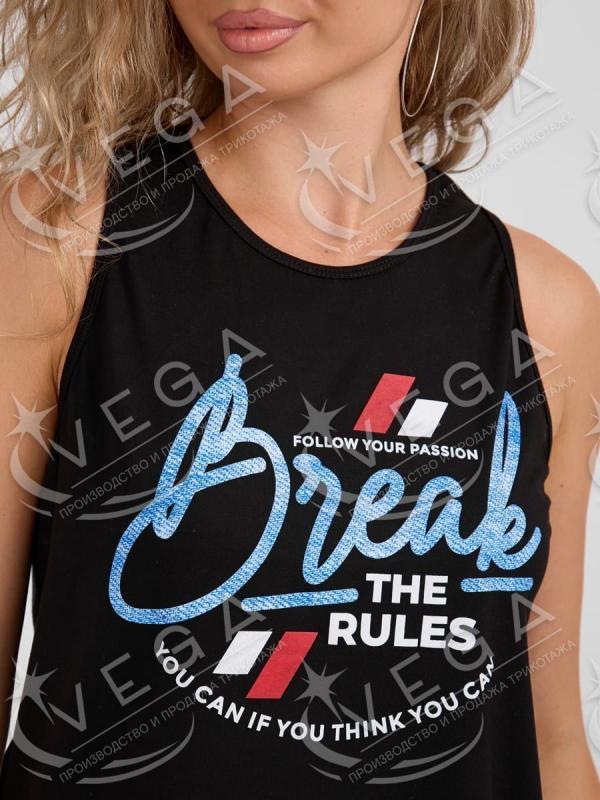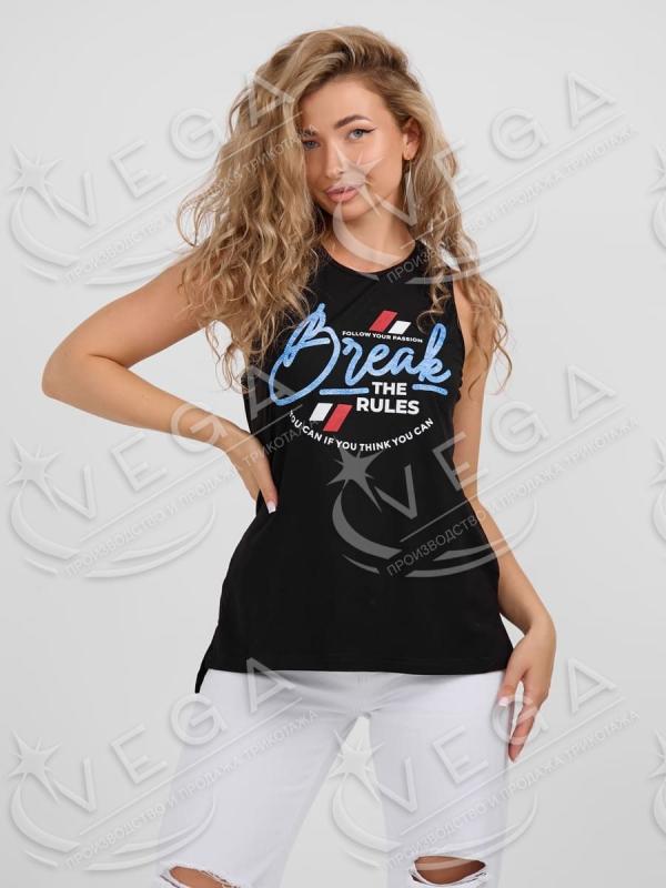 Представляем вам женскую футболку (майку) без рукавов с озорными боковыми разрезами и модным принтом. Ради Вашего комфорта, мы уделили максимум внимания качеству пошива. Элегантный крой верхней части модели подчеркнет форму груди, а расклешенный низ с разрезами сядет на фигуру любого типа и скроет все недостатки. Такой крой подойдет и будущим мамам, не будет вызывать раздражительности при носке, так как это происходит с моделями в обтяжку. Изделие хорошо тянется, сохраняет свою форму после множества стирок. Благодаря вискозе маечка очень нежная и приятная к телу, воздухопроницаема, а небольшой процент лайкры в составе продлит ее срок службы. А также мы позиционируем ее как - майка для фитнеса женская или майка для спорта женская. Она идеально подходит для тренировок в зале и занятий спортом - бег, йога, фитнес, танцы, пилатес. Футболка без рукавов на широких бретелях однотонная, легкая, свободная - в ней комфортно в летнюю жару и в зале круглый год. Такая модель футболки без рукавов идеально дополнит ваш гар