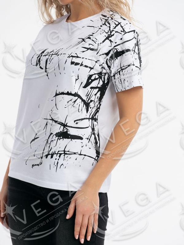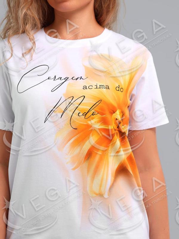 Футболка классического фасона, сшита из ткани кулирка, с округлым вырезом с усилением горловины. Она мягкая, приятная к телу и на ощупь, не нарушает воздухообмен, поэтому в ней тепло, когда на улице прохладно и комфортно в жарком помещении. Небольшое количество лайкры в составе ткани продлит изделию жизнь и не даст потерять вид нового товара, так как обладает уникальной способностью к растяжению и восстановлению формы. Такая модель станет прекрасным дополнением вашего гардероба. Она отлично подойдет для любого образа. Большой выбор из ассортимента моделей с разными принтами поможет вам выбрать любимую. Надев футболку с пиджаком, Вы создадите образ деловой и стильной девушки. Если Вы решите надеть ее с джинсами и кроссовками и отправиться на прогулку, то получится образ утончённый и романтический. Каждая из них по своему хороша, а стильный принт делает модель индивидуальной и заметной.