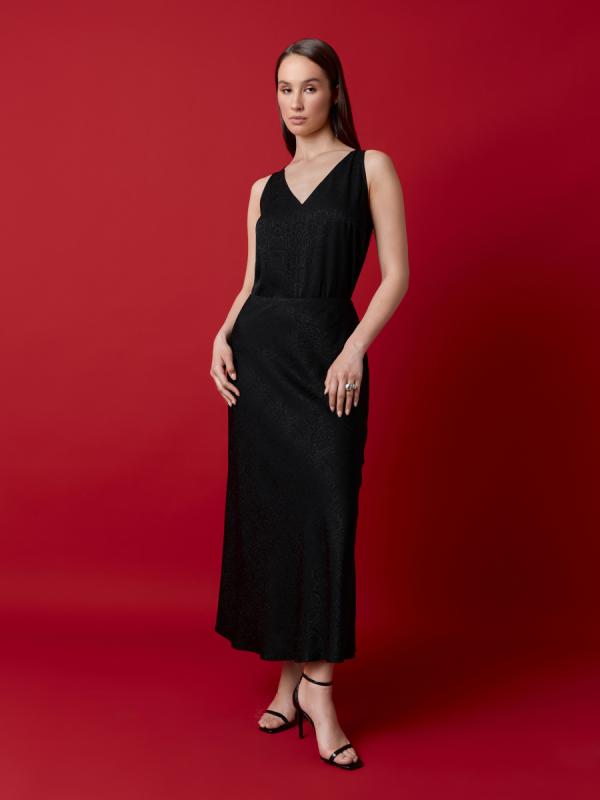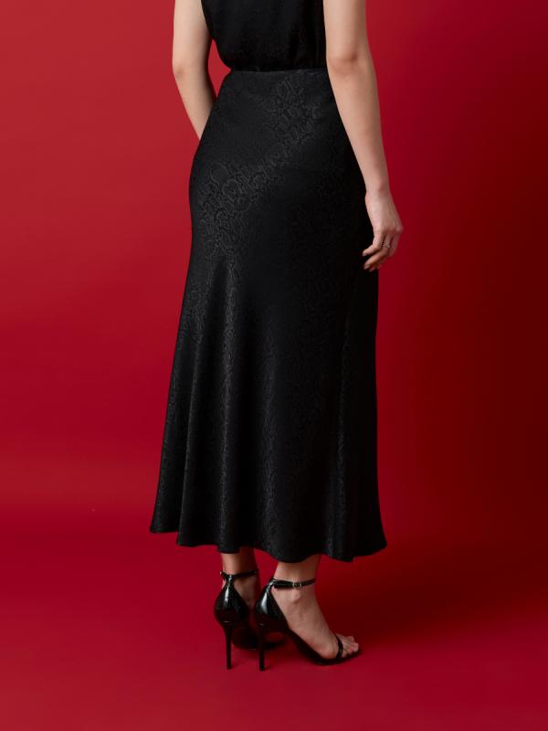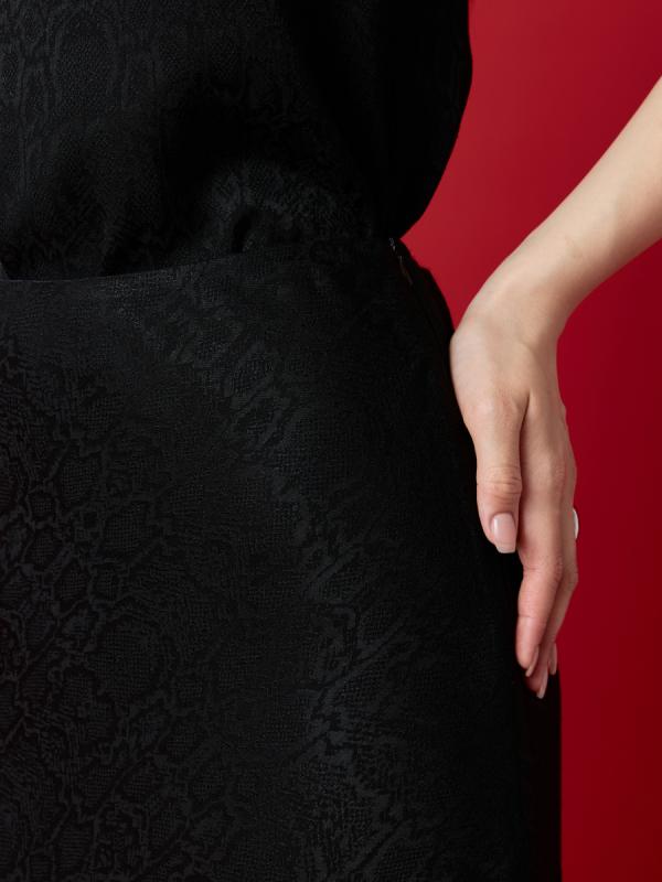 Состав: 100% вискоза с подкладкой 90% полиэстер 10% шелк Актуальная юбка– необходимая позиция для базового гардероба. Модель из жаккардовой ткани с деликатной фактурой, имитирующей чешую змеи, не только усиливает визуальный эффект, но и снижает сминаемость ткани. Жаккард – отличная золотая середина между принтом и однотонной тканью, добавляющая элегантность и стиль. Эта юбка позволит создать как вечерний образ, так и повседневный наряд. В нашей новогодней капсуле вы можете легко создать многофункциональный образ, дополнив юбку топом 2.71.3-369 из той же ткани.