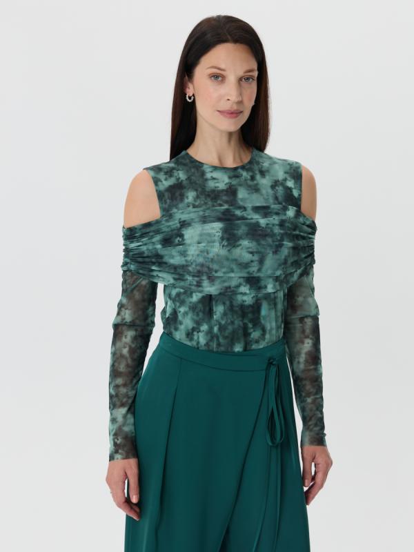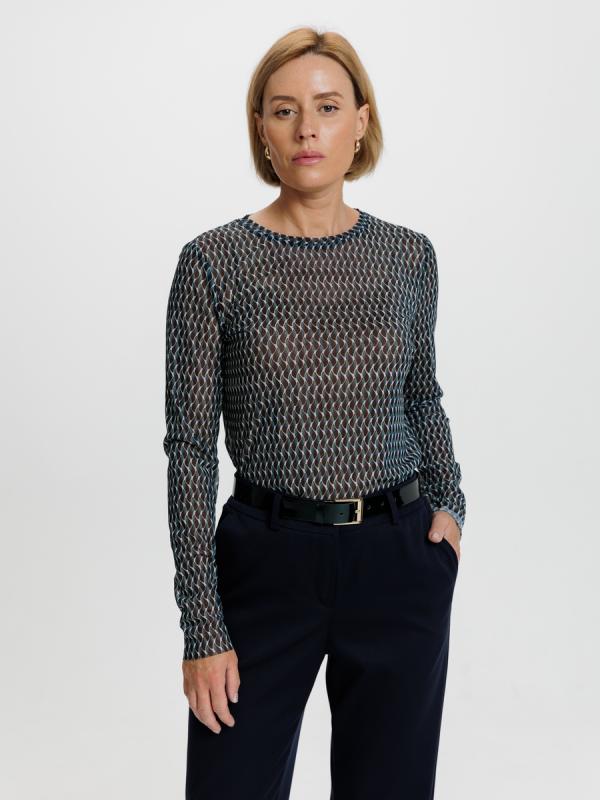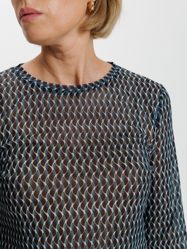 Лаконичный лонгслив из нежной полупрозрачной сетки гармонично впишется в расслабленные образы с брюками и в романтичные -с юбками. Эксклюзивный графичный принт, разработанный в нашей лаборатории подчеркнет Вашу неповторимость и уникальность.