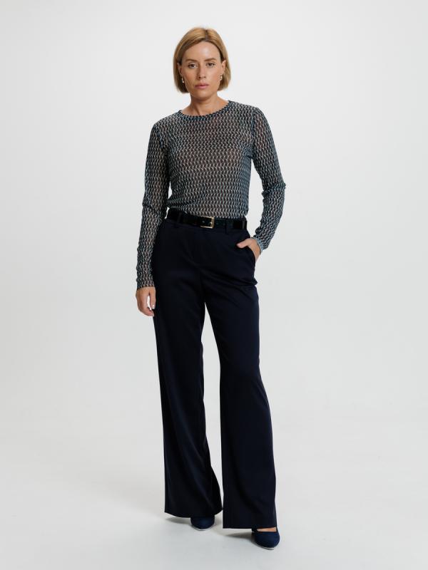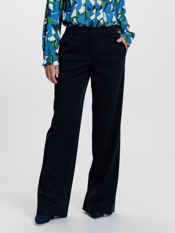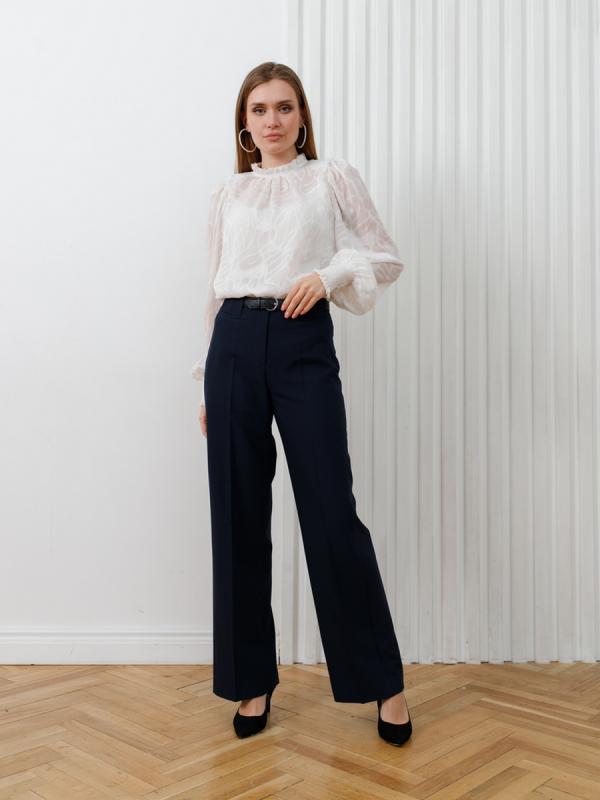 Сочетание идельных пропорций. Широкие классические брюки с трендовой и комплиментарной для фигуры деталью- шлицей на з/п, которая эфектно раскрываются в динамике движения.Модель выполнена из пластичной. упругой. несминаемой костюмной ткани.