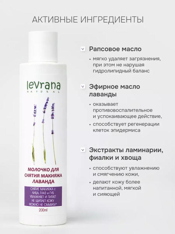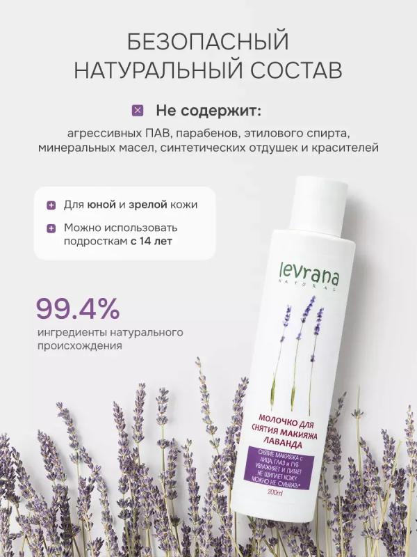Молочко для снятия макияжа с кожи лица, век и губ «Лаванда» мягко и эффективно очищает, при этом питает и увлажняет кожу. Подходит для ежедневного применения даже для самой сухой и обезвоженной кожи.