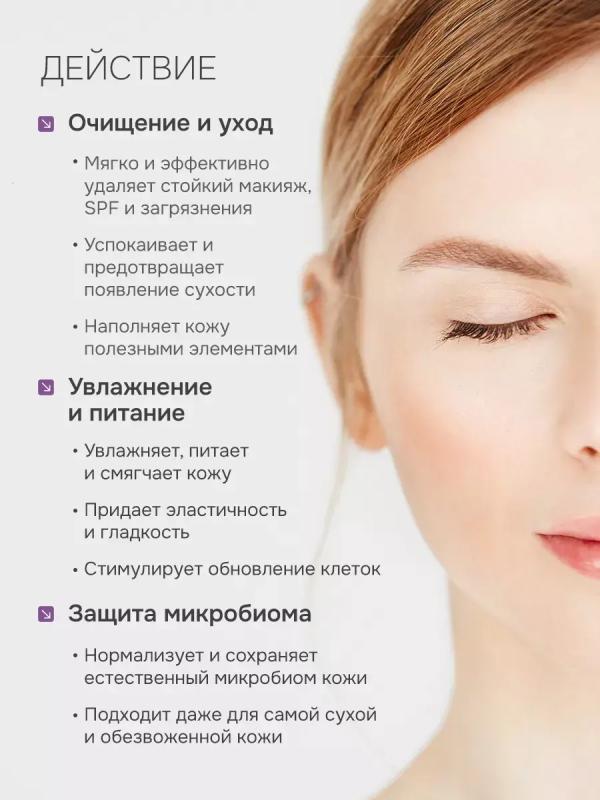 Мягко и эффективно очищает и увлажняет кожу.