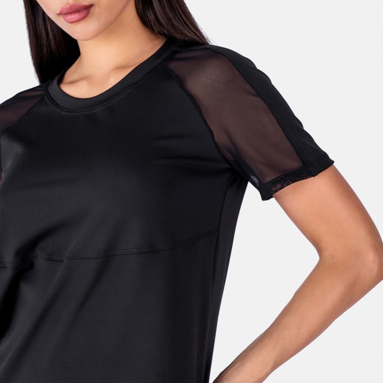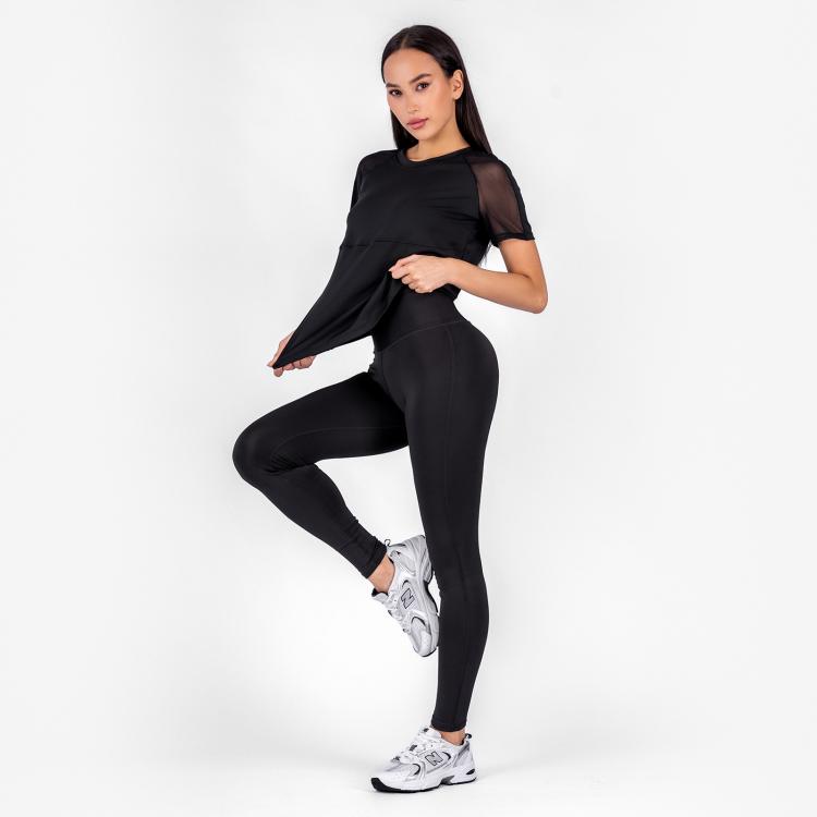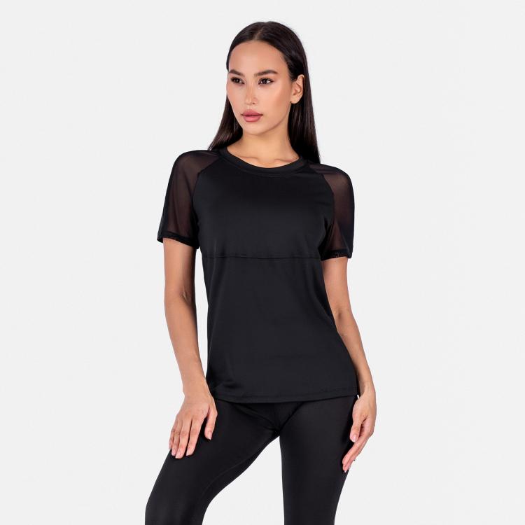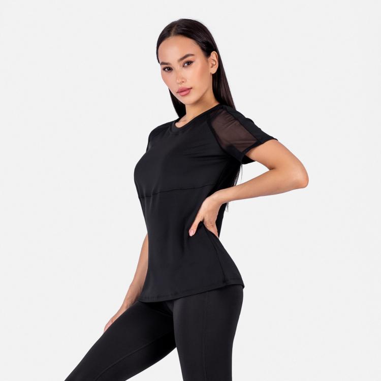 Женская футболка прямого кроя, с резными линиями, вставками из сетки и рукавом реглан.Материал: