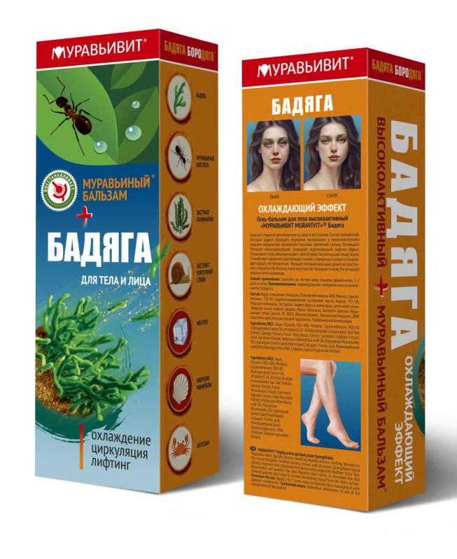 Высокоактивный, противовоспалительный, охлаждающий, профессиональный гель-бальзам для вен и околосуставных сосудов «Бадяга» торговой марки Муравьивит.Для снятия отёков в областях суставных соединений, вызванных нарушением водно-солевого обмена. Для нормализации функционирования артериально-сосудистой системы при варикозном расширении вен. Назначение: при сосудистых патологиях