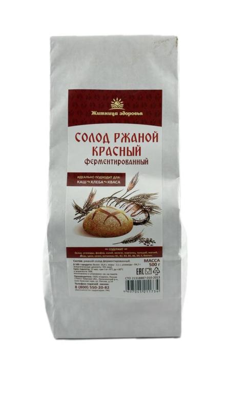 Ржаной солод содержит в себе белки, углеводы, фосфор, калий, железо, марганец, кальций, магний, медь, цинк, селен, витамины В1,В2,В3,В5,В6,В9,Е,биотин. Солод ржаной полезен при заболеваниях, истощениях, анемиях, а также во время беременности и кормления. Высокоэффективное энергетическое питание с выраженным восстанавливающим и общеукрепляющим действием.