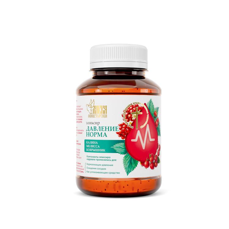 Состав: медовая патока, экстракты: плодов боярышника, пустырника, валерианы, коры и плодов калины, мяты перечной, ромашки аптечной, гибискуса, мелиссы, крапивы, корня одуванчика, календулы. Эликсир создан по традиционному монастырскому рецепту. Экстракты, входящие в состав, способствуют нормализации кровяного давления и улучшению тонуса сосудистой стенки, помогают очищать сосуды и поддерживать их эластичность, способствуют нормализации циркуляции крови, улучшая мозговое кровообращение и оказывая благоприятное влияние при нарушениях ритма сердца. Натуральные компоненты помогают нормализовать параметры крови и поддерживать её свёртываемость в пределах нормы, снижают нервную возбудимость, оказывают успокаивающее действие. Мята, ромашка и календула оказывают спазмолитическое и противовоспалительное действие. Способ применения: 2 раза в сутки, 2 чайные ложки эликсира развести в стакане теплого чая или воды, выпить за 20 минут до еды. Минимальный курс ежедневного беспрерывного приема 21 день.