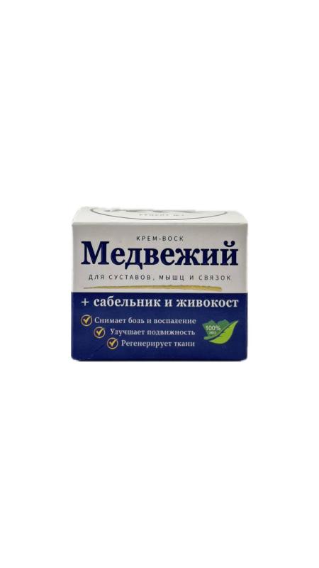 Мазь применяется при суставно-мышечных проблемах, обладает болеутоляющим, противовоспалительным действием. Облегчает лечение артрита, остеоартроза, ревматизма, подагры, суставного ревматизма. Снимает боль, блокирует воспалительный процесс, уменьшает отечность в больном суставе, выводит из суставов солевые отложения, расслабляет мускулатуру, улучшает движение крови. Состав: жир барсучий, нутряной (свиной) жир, кедровое масло, льняное масло, пихтовое масло, живица кедровая, прополис, воск, каштан конский. Применение: наносить круговыми массирующими движениями на область больного сустава в течение 3-5 минут 2-3 раза в день. Смазанное место тепло укутать. Срок годности: 24 месяца Не является лекарственным препаратом.