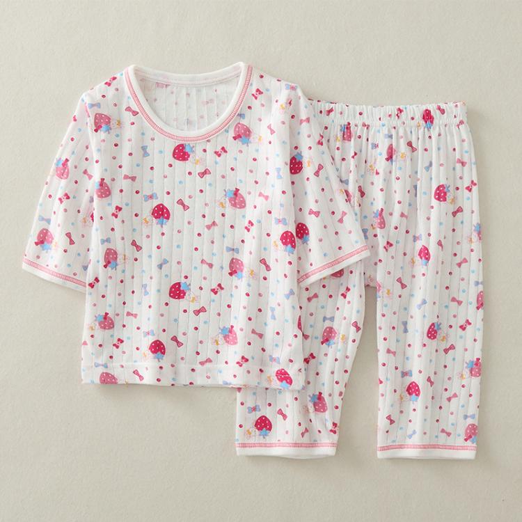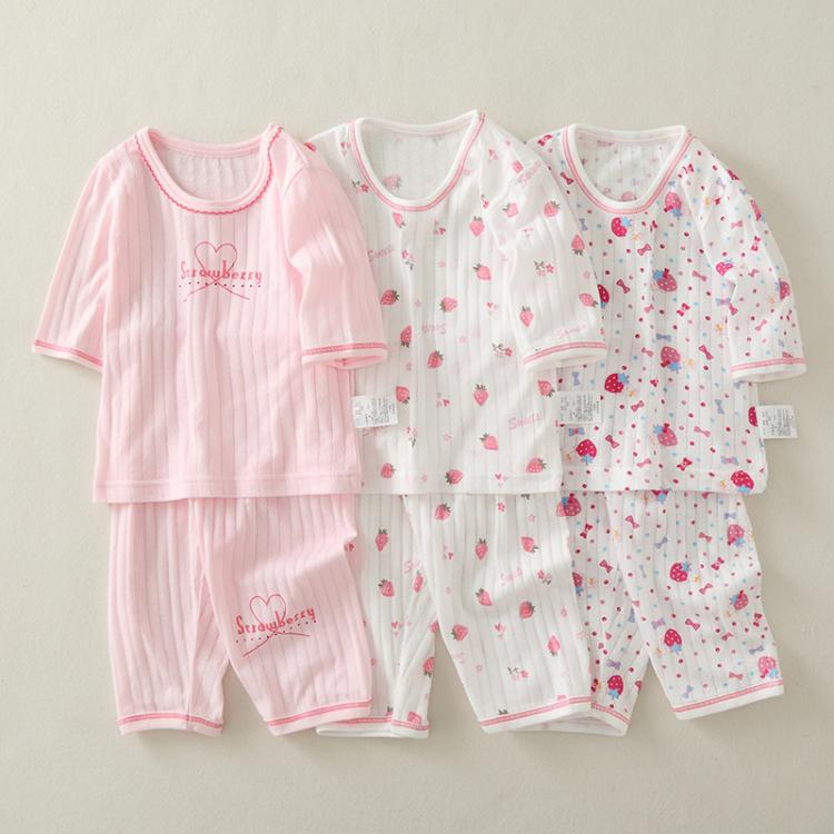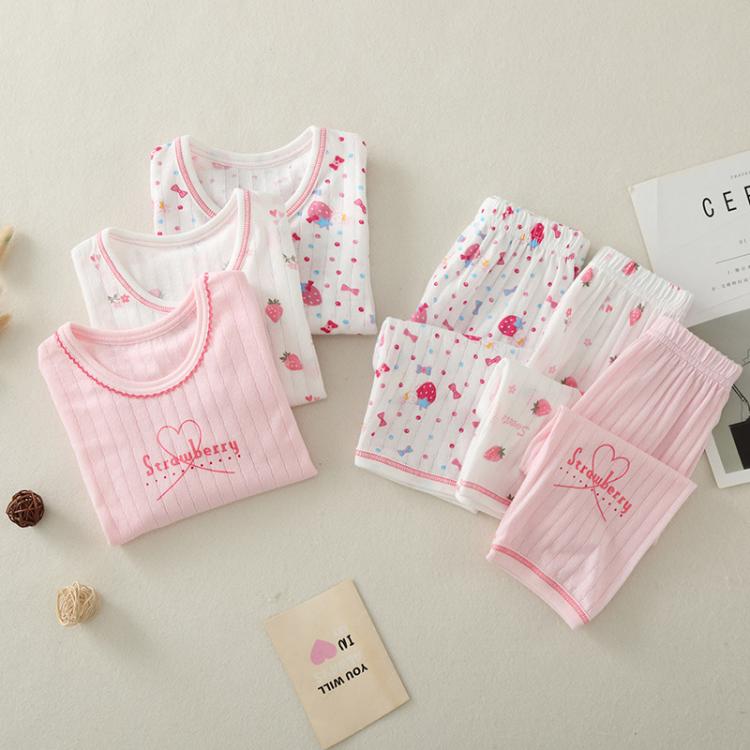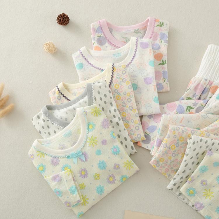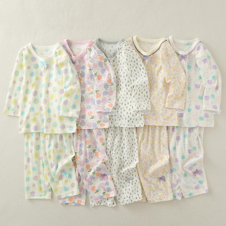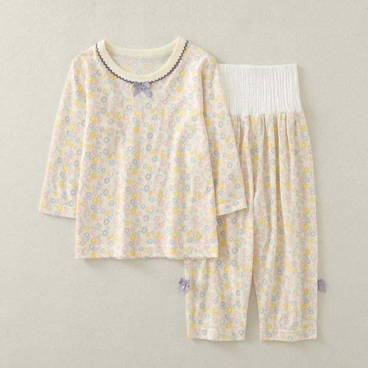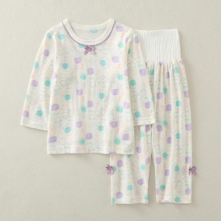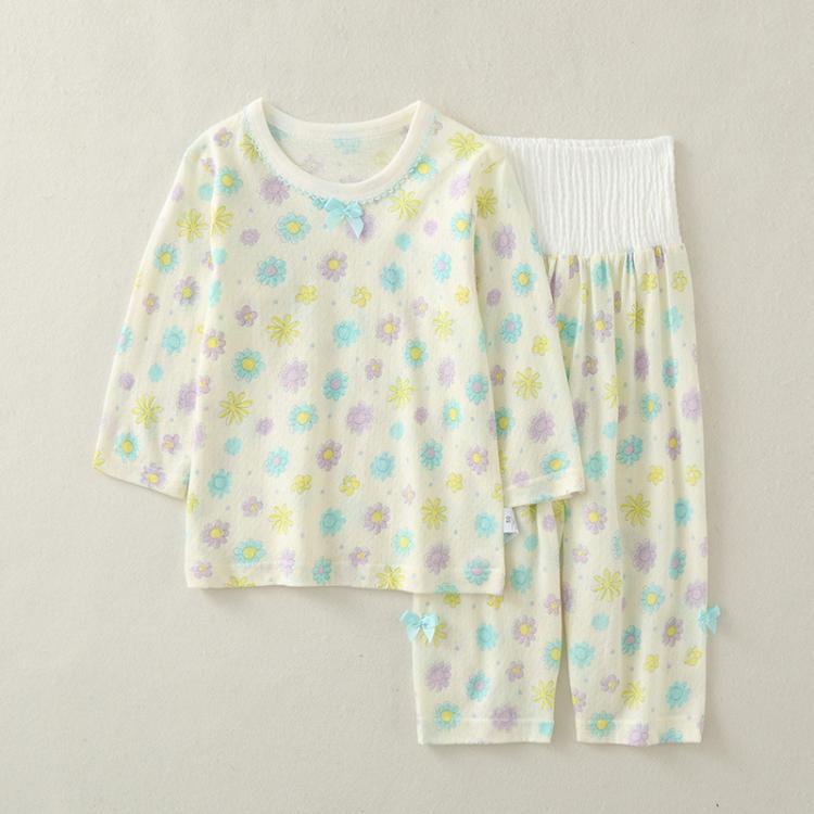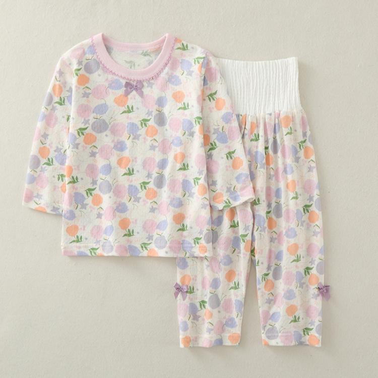 Детский костюм с длинными рукавами из чистого хлопка, летняя тонкая одежда для девочек с кондиционером, комплект из двух предметов, высокая талия, защита живота, детская домашняя одежда, пижамы