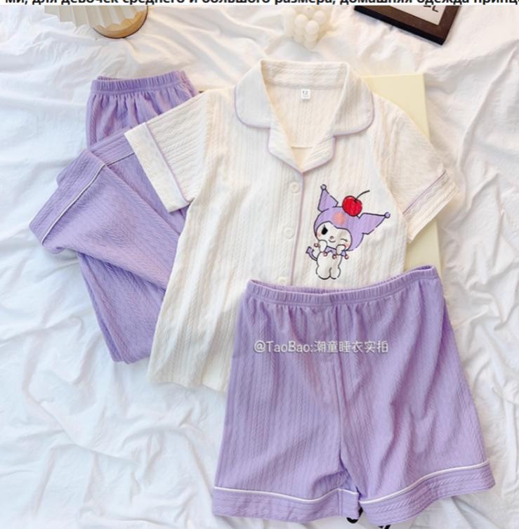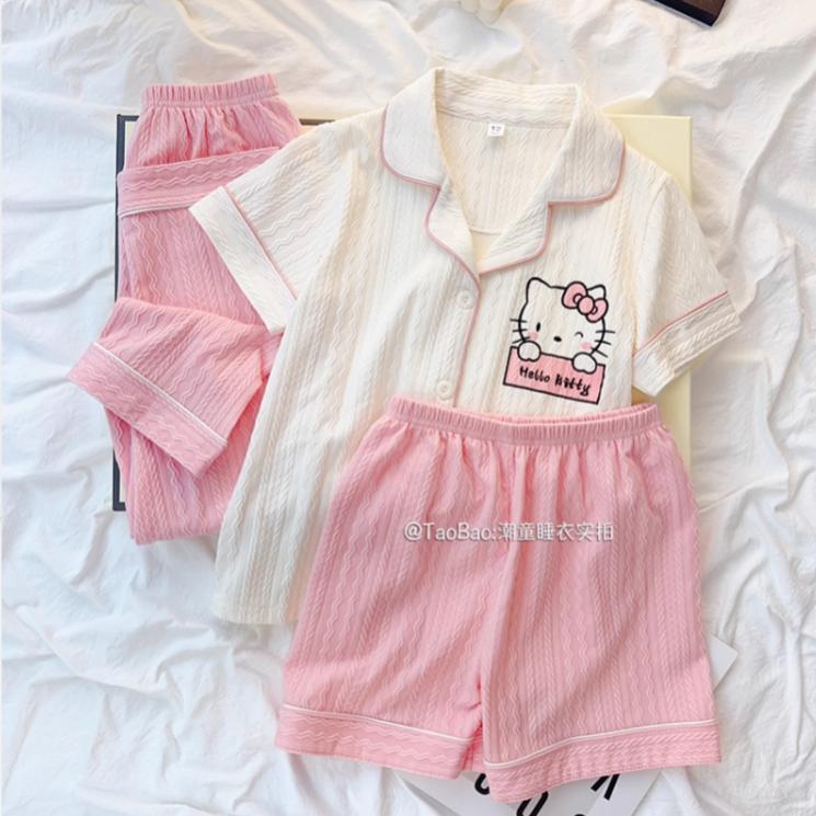 Детская летняя пижама для девочек Hello Kitty из чистого хлопка, трикотажная, с короткими рукавами, для девочек среднего и большого размера, домашняя одежда принцессы (розовый только в размере 14 в наличии