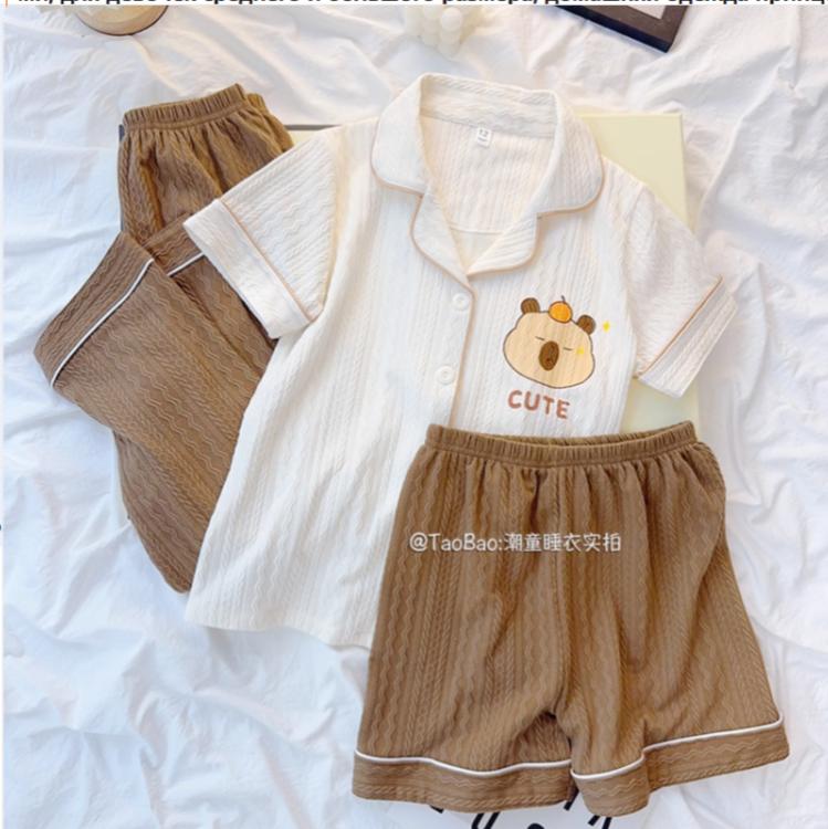 Летние детские пижамы с короткими рукавами для девочек с героями мультфильмов, домашняя одежда для мальчиков среднего и старшего возраста, костюмы для учеников начальной школы, тонкая одежда с кондиционером